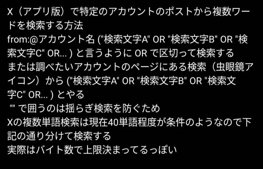 | … | 1無題Name名無し 25/11/01(土)01:45:52No.1907307そうだねx6Xで特定のアカウントのポストから複数ワードを検索する方法 |