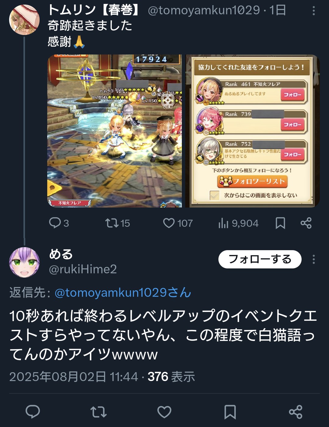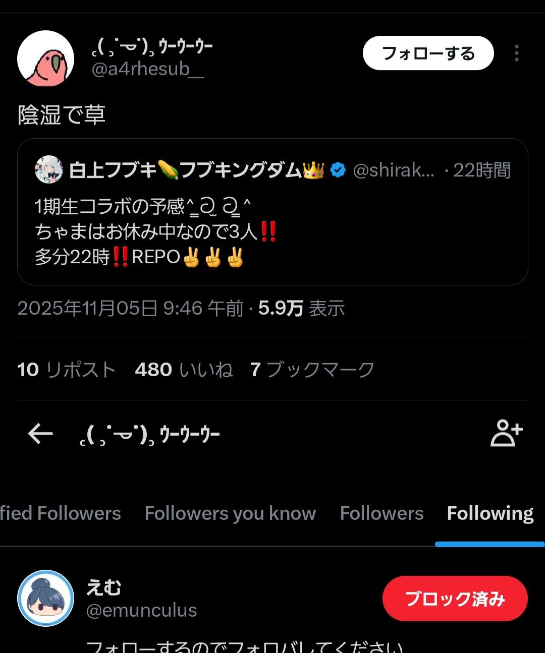| … | 41無題Name名無し 25/11/01(土)04:29:45No.1907351そうだねx13 1761938985462.jpg-(120388 B) 言い方が妙にチクチクしてるしサブ垢ばっかりフォローしてるな? |