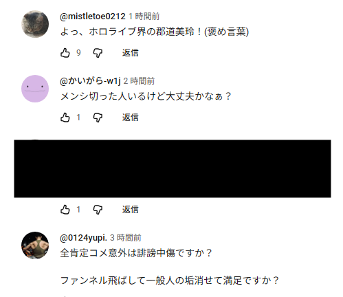 | … | 73無題Name名無し 25/11/01(土)08:17:16No.1907387そうだねx2さくらみこの配信切り抜きOKってなってたけど悪質な切り抜きや意図を曲解した切り抜きはNGってなってるよね |