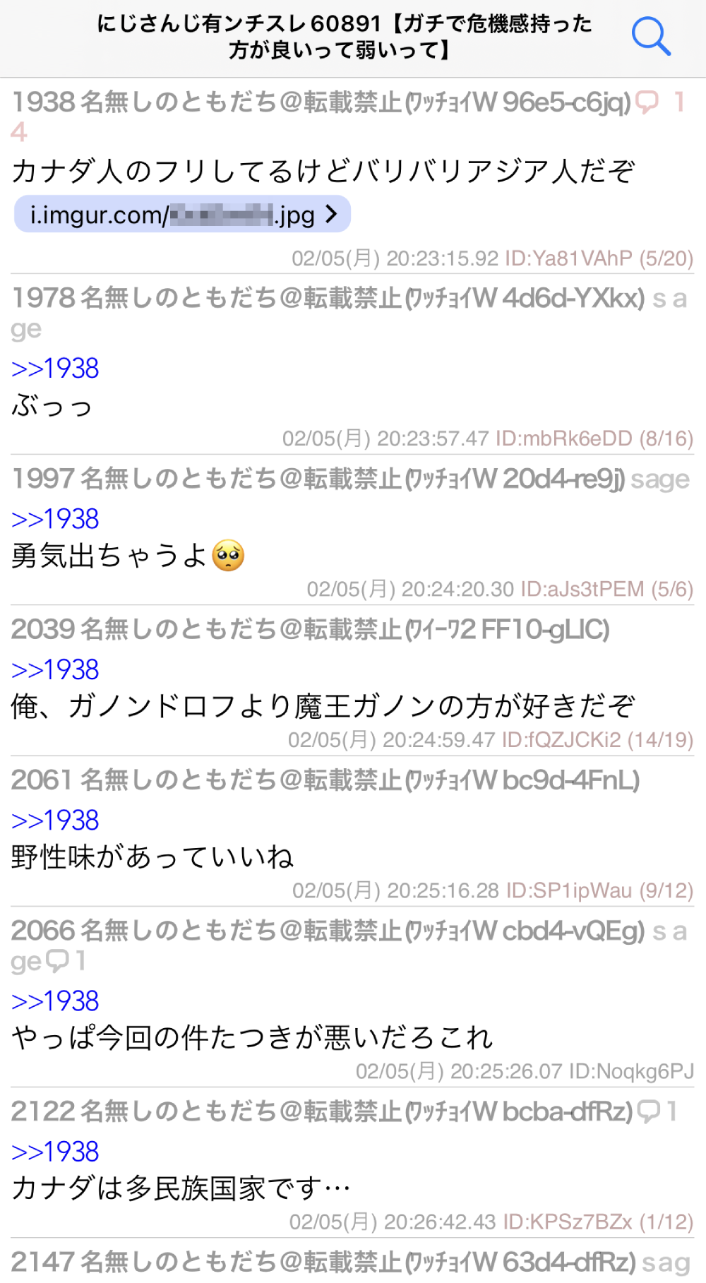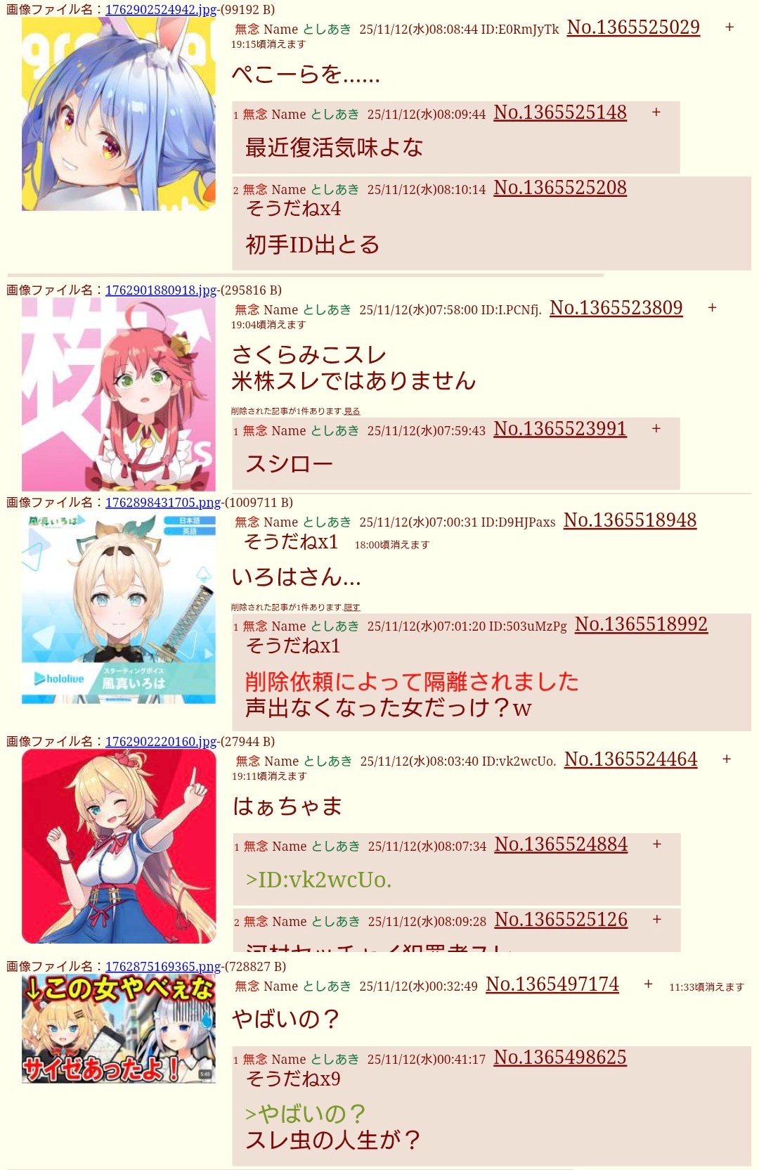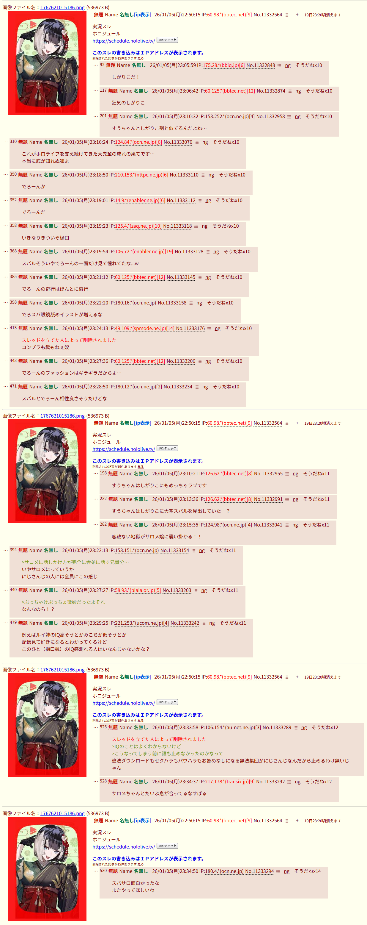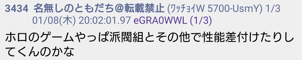 | … | 1480無題Name名無し 26/01/09(金)01:21:59No.1935293そうだねx3>いもげで中国人バレしたホロアンチもそうだけど何でそんな国籍バレると焦るんだろうな |