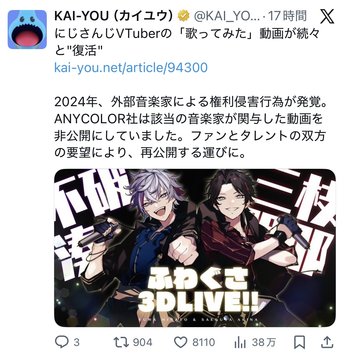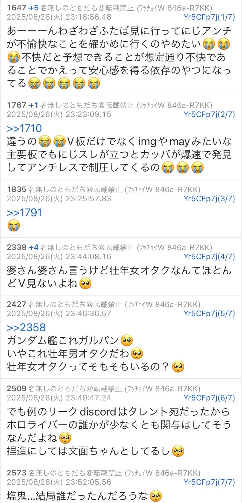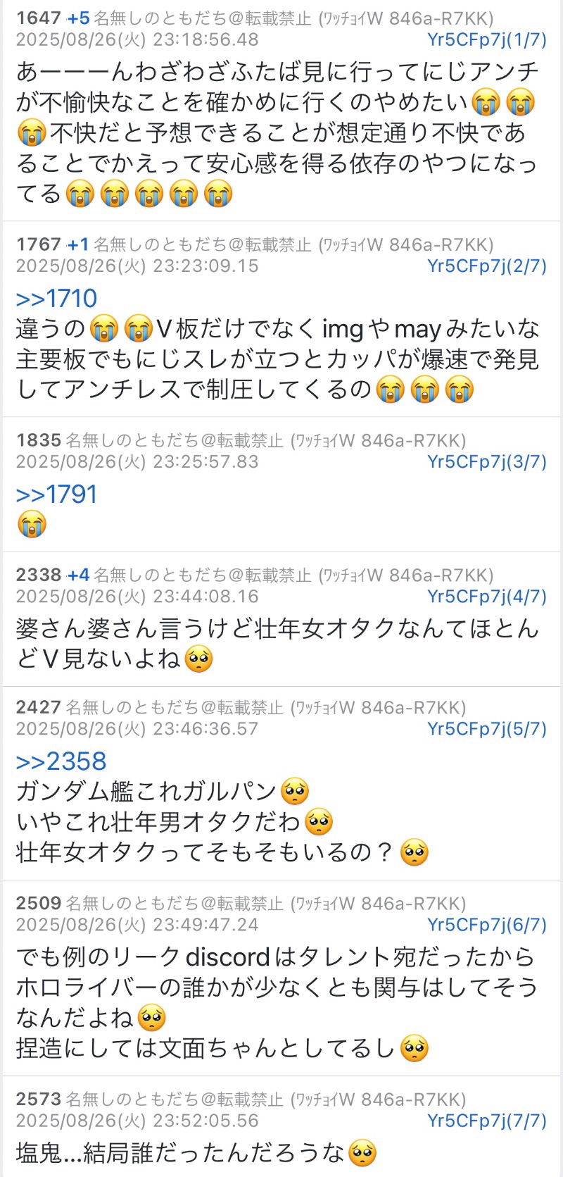 | … | 1455無題Name名無し 26/01/09(金)00:03:15No.1935263そうだねx4 1767884595728.png-(381853 B) >試しに中華botの垢の一つをどこリスに食わせて調べて見たらホロ以外だとライバーで唯一竜胆尊がヒットしててダメだった |