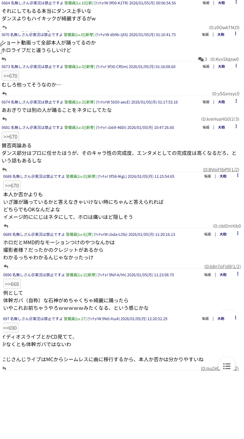 | … | 27無題Name名無し 26/01/02(金)15:54:08No.1933472そうだねx16>まあダンス自体は見れるもんくらいにはできるだろ死に物狂いの本気でやれば |