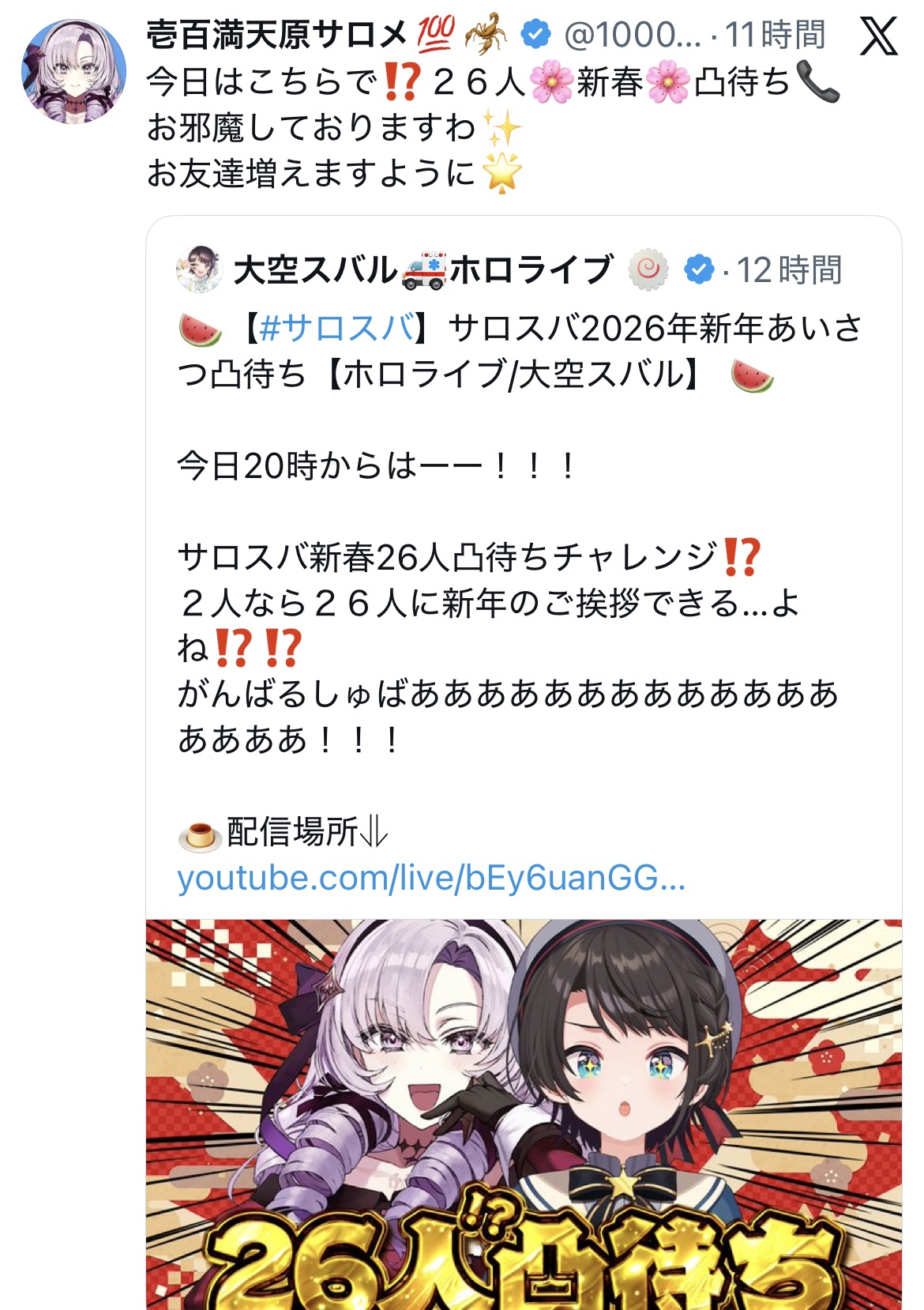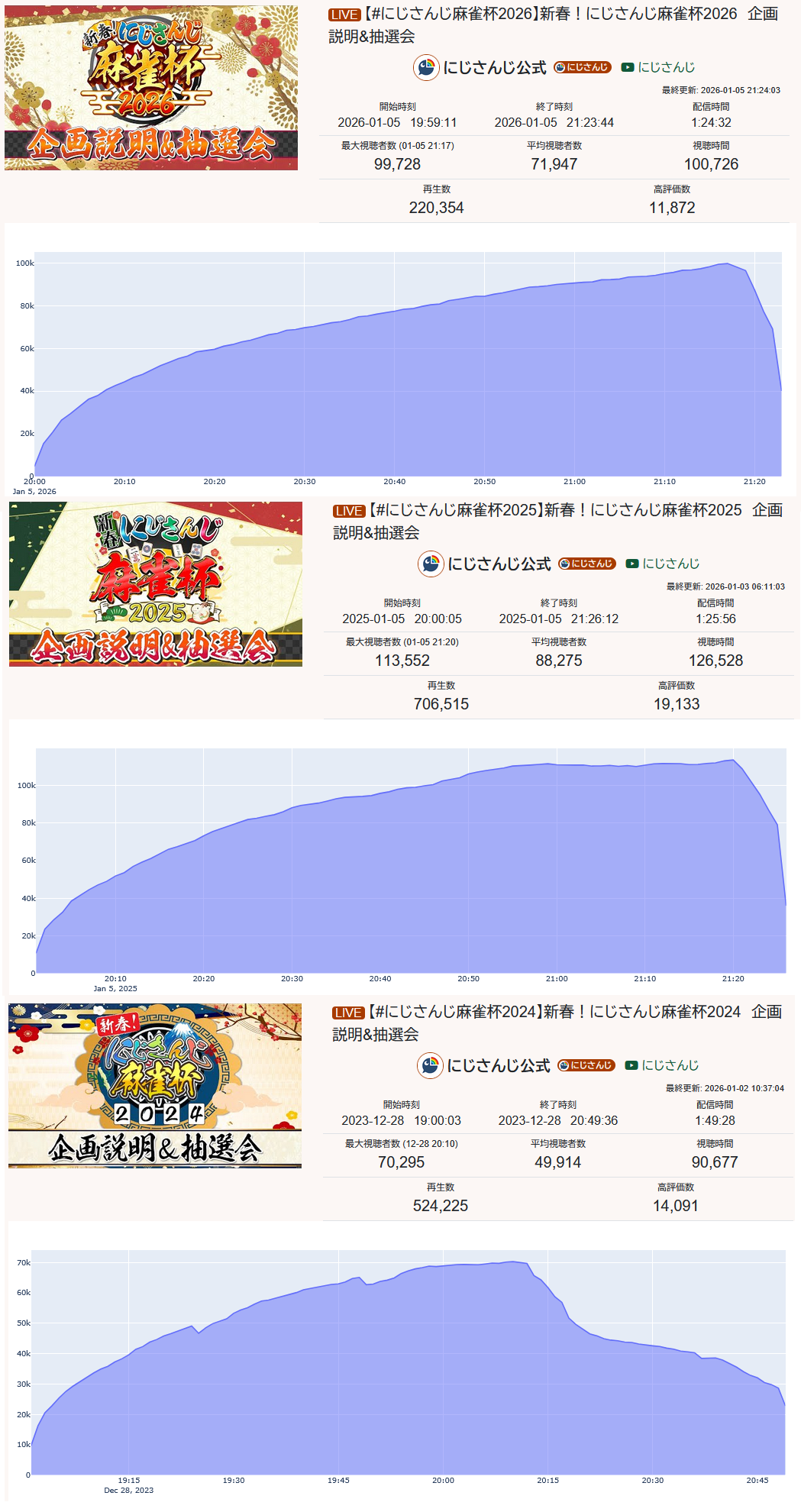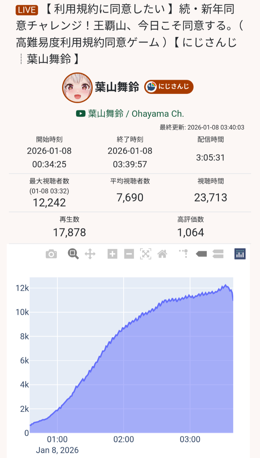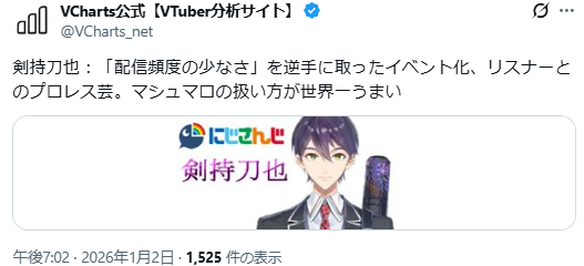 | … | 53無題Name名無し 26/01/02(金)19:51:55No.1933507そうだねx17他所の同接とか気にしてないで自分の贔屓が去年比どれくらい成長したかで考えれば良いのに |