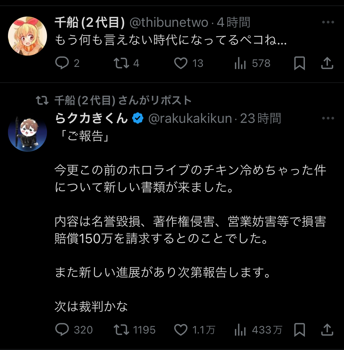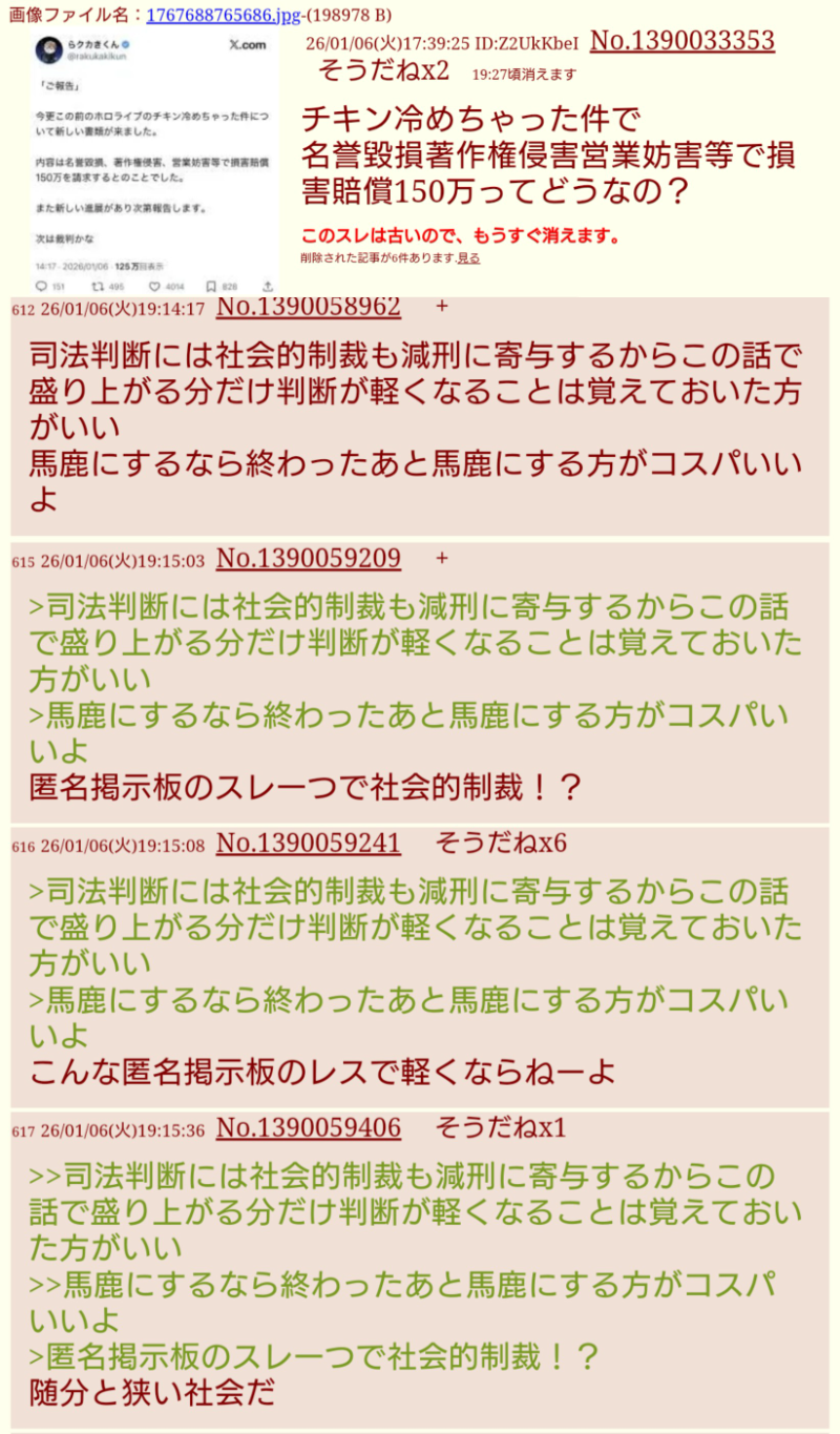 | … | 1483無題Name名無し 26/01/09(金)02:32:44No.1935296+和解や示談より当局コラボのほうが怖いだろうなぁ... |