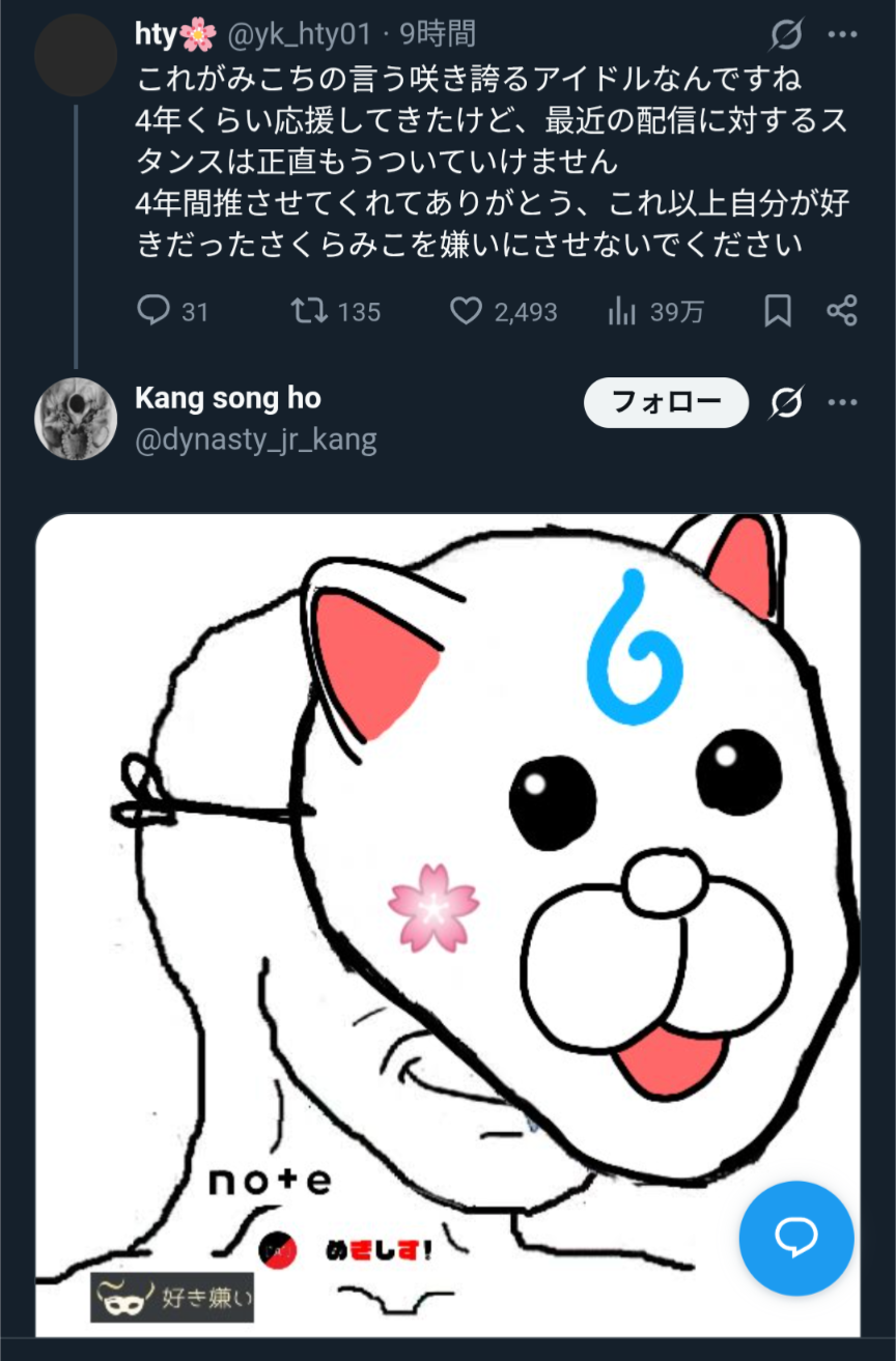 | … | 85無題Name名無し 26/01/02(金)21:11:51No.1933543そうだねx28反社呼びって普通に結構リスキーな発言だから単にえにから側から手紙もらうような隙のある話したくねえんだよ |
