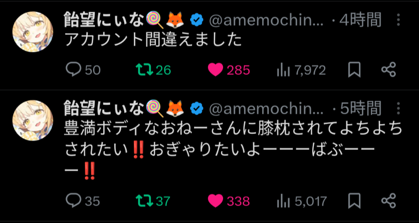 | … | 322無題Name名無し 26/04/03(金)18:06:42No.1961957+マジでこれに関してはにぃなちゃんが下手なわけではないからな… |