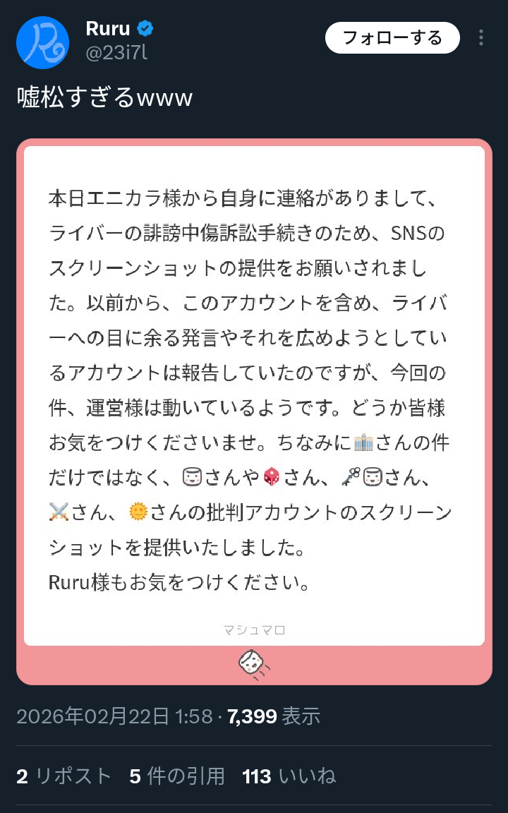 | … | 742無題Name名無し 26/02/24(火)21:00:31No.1951627そうだねx6国内外で本格的に法的措置か |