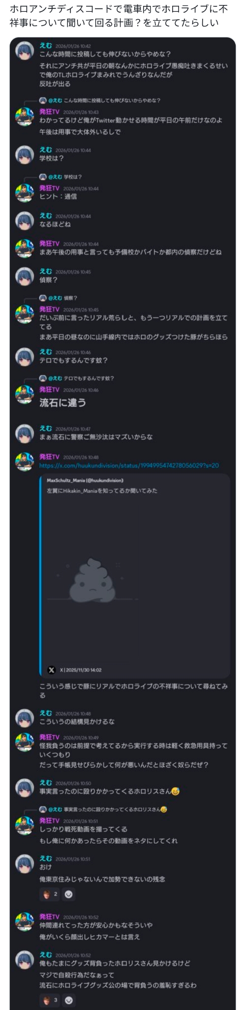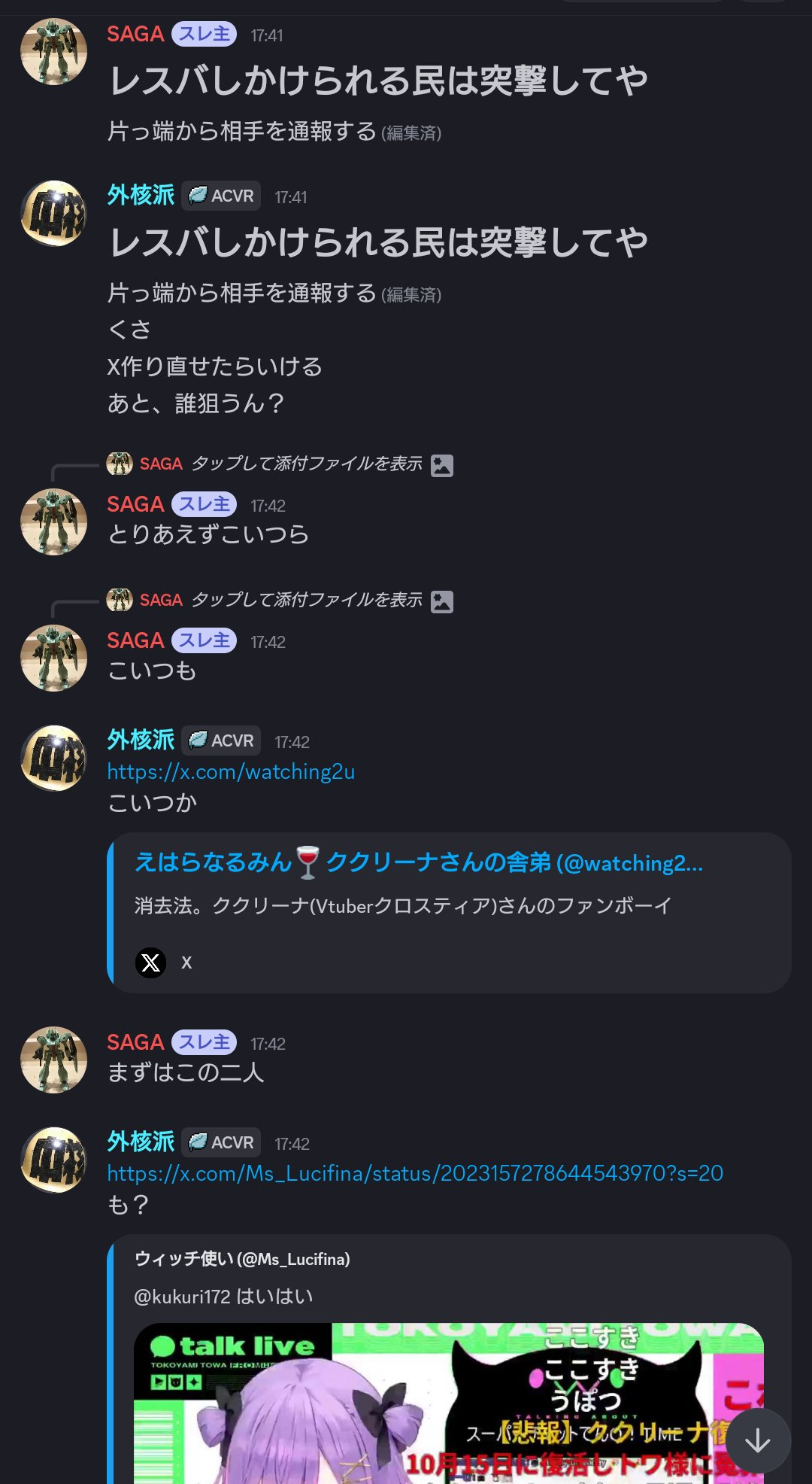 | … | 39無題Name名無し 26/02/22(日)23:32:34No.1950828+>KアリBARの存在を知らずリスナー叩きを始める擬態にじリス |