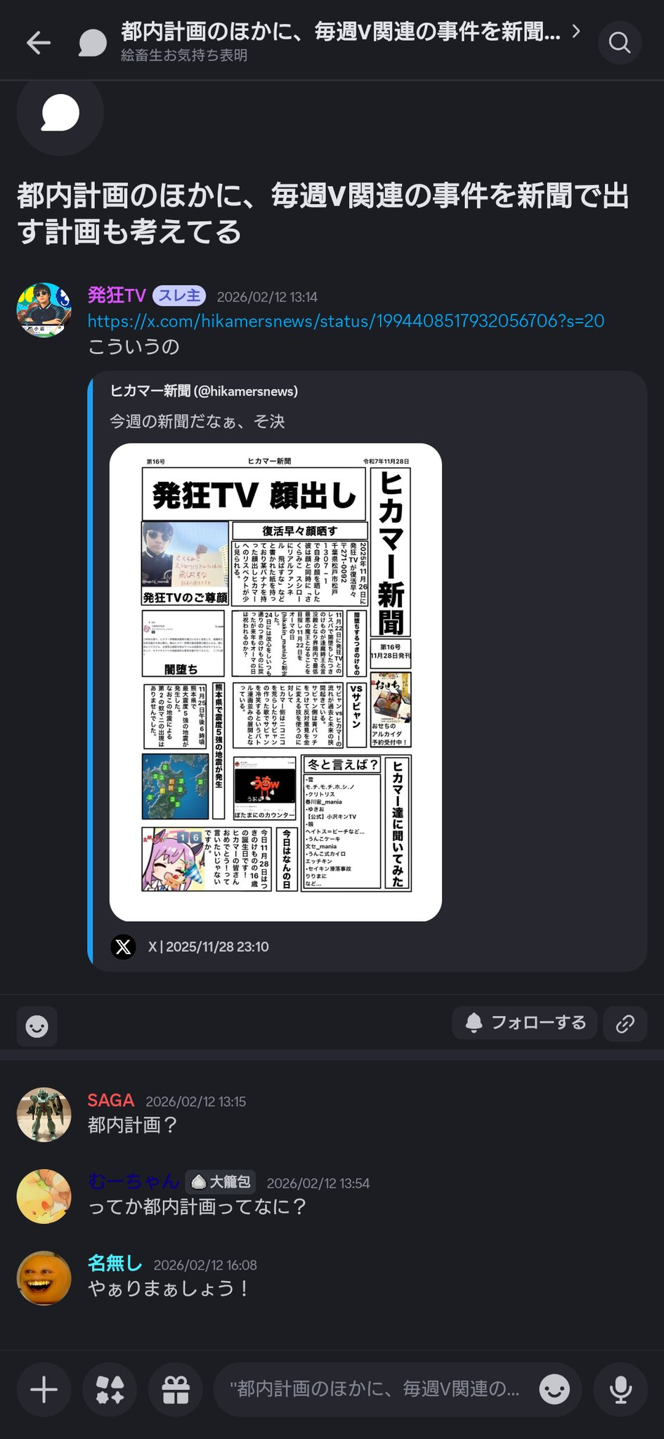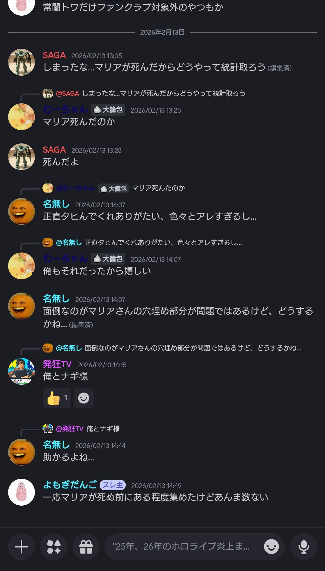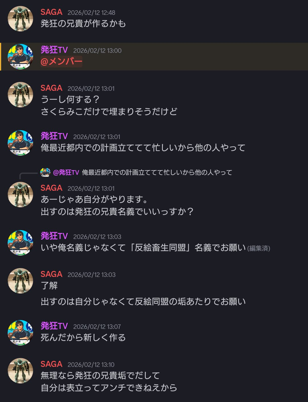 | … | 732無題Name名無し 26/02/24(火)20:44:03No.1951616+廃止ってのはディスコ鯖担当かなんかか? |