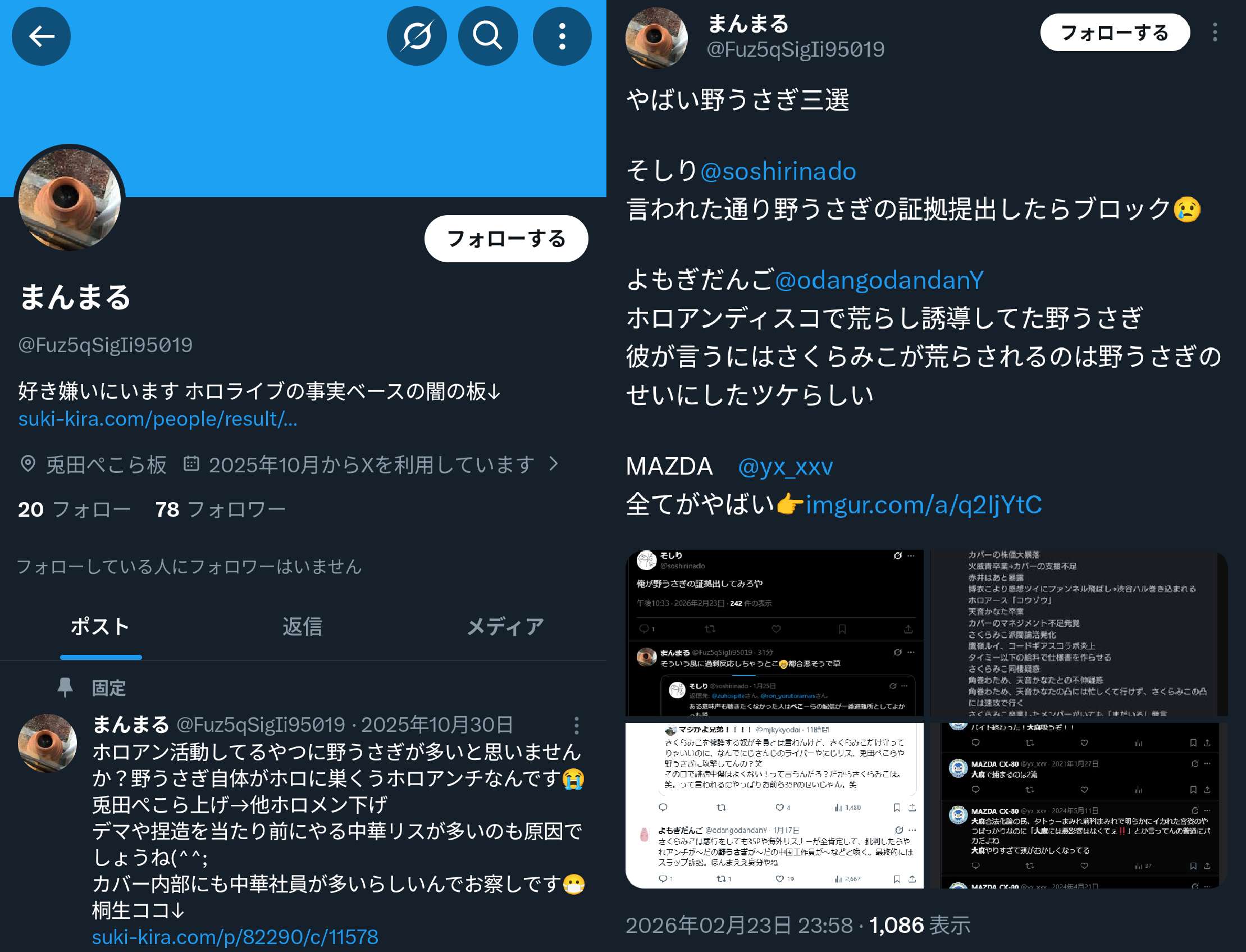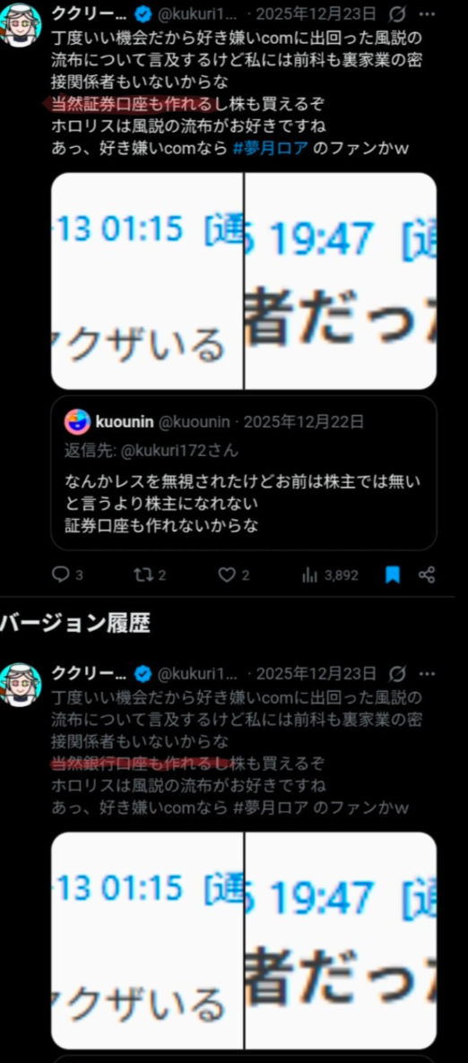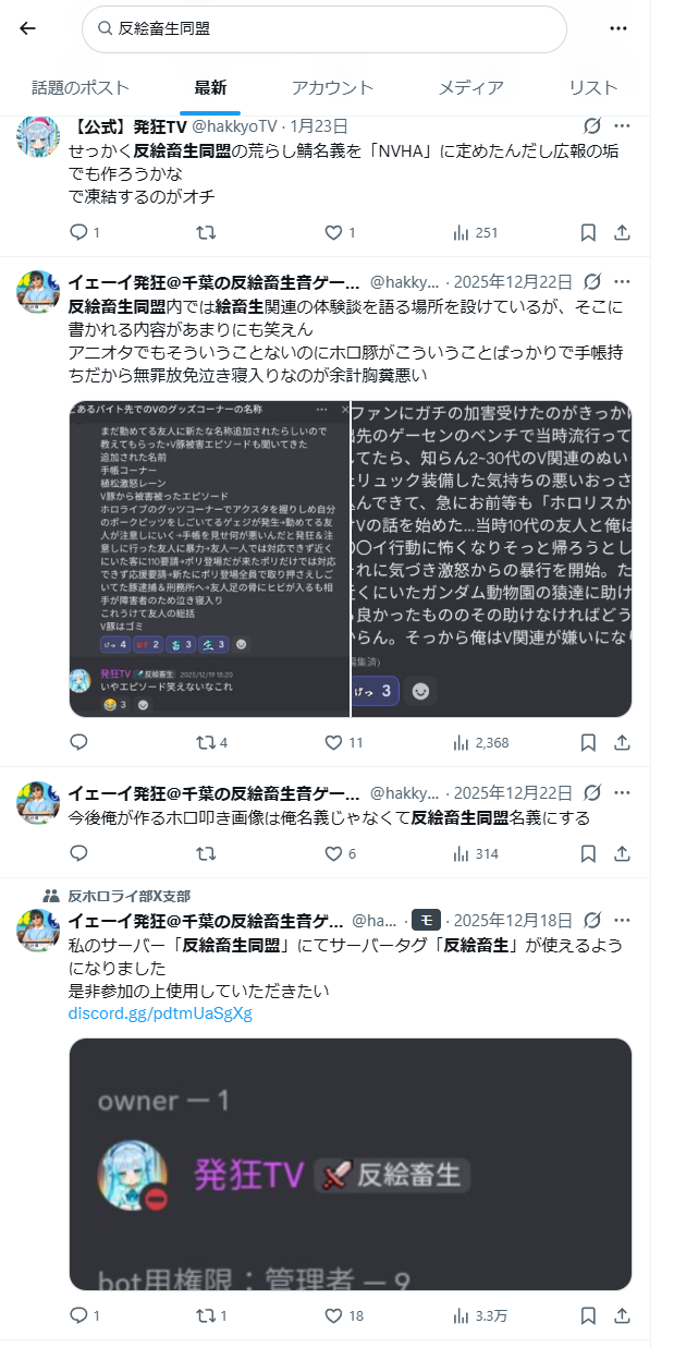 | … | 5無題Name名無し 26/02/22(日)21:59:00No.1950786そうだねx7 1771765140479.png-(314386 B) Xで他箱・他社・個人への中傷をしているアカウントがにじリスかを確認する方法 |