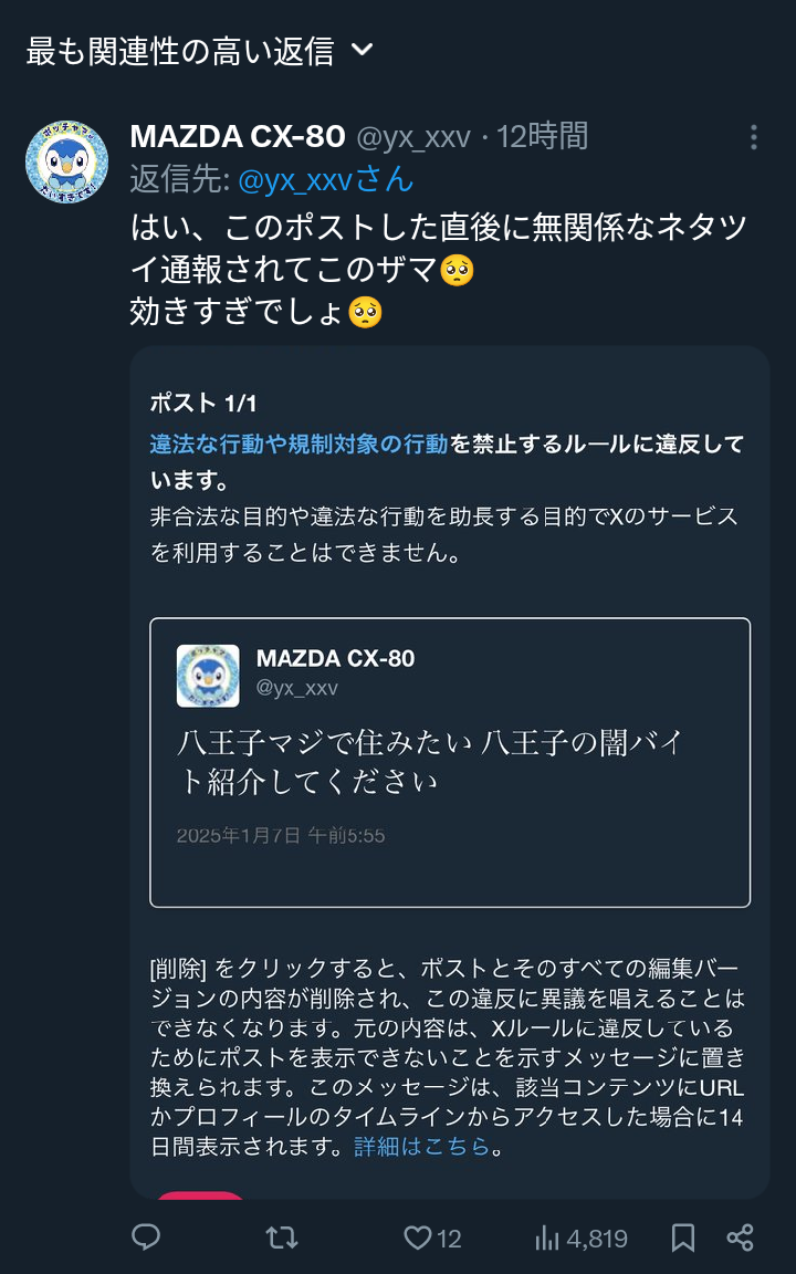 | … | 778無題Name名無し 26/02/24(火)21:47:20No.1951665そうだねx5これまでも相当数処されてるのに何もしてない的な認識なのがおかしいのでは |