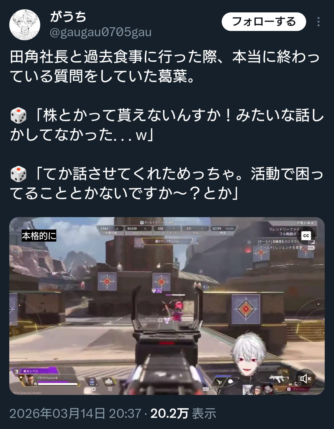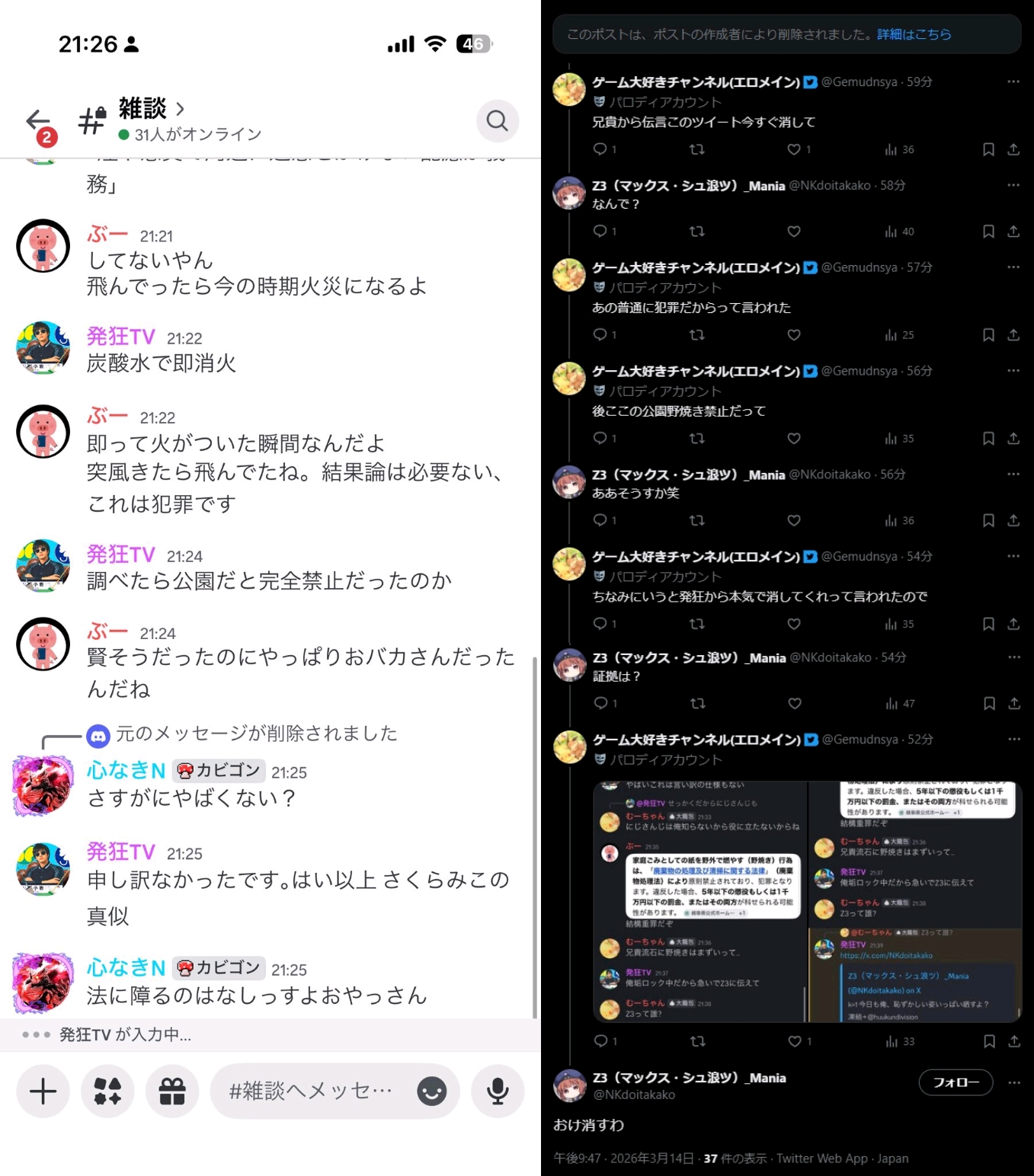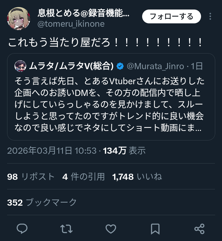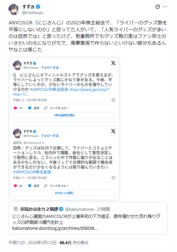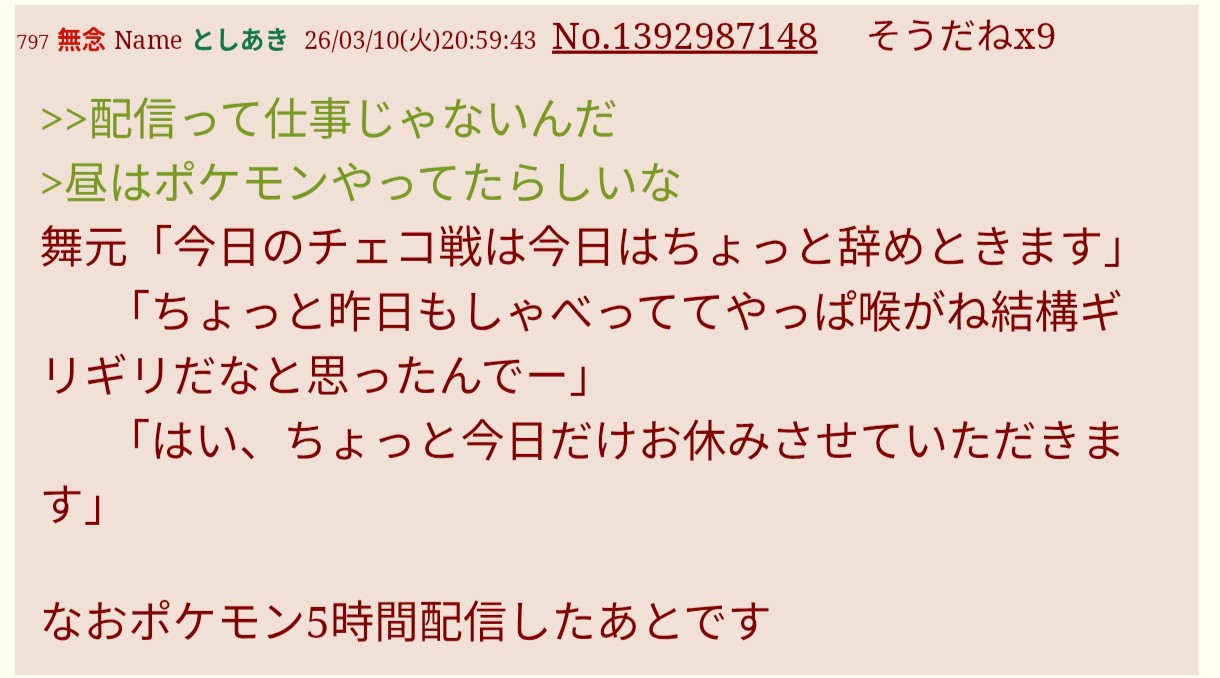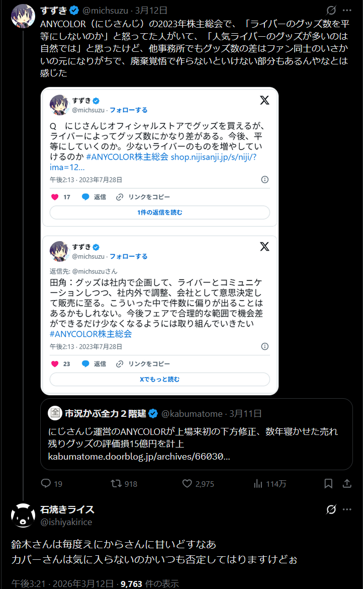 | … | 46無題Name名無し 26/03/07(土)23:01:20No.1955620そうだねx16「会社としてゴミカスだからw」(ローレン、りりむリスナー) |