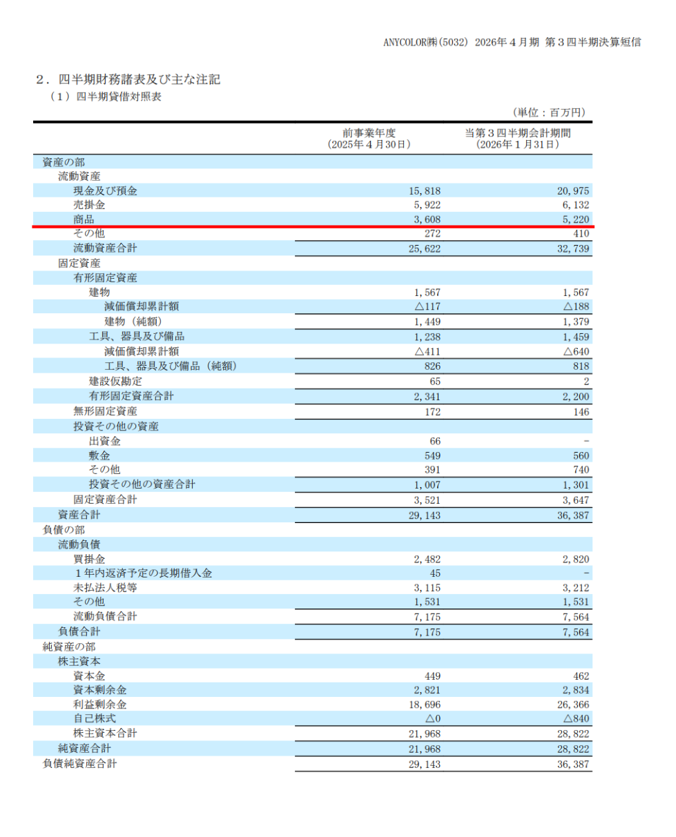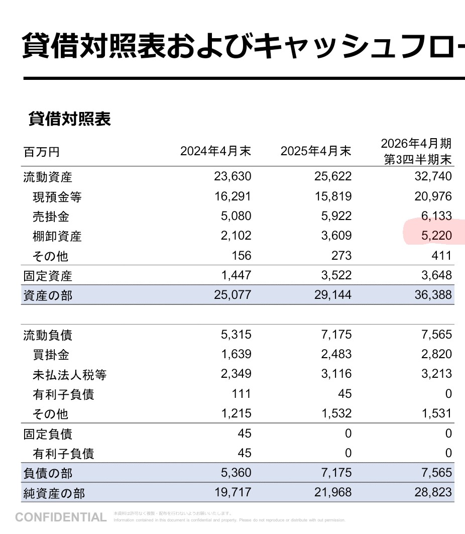 | … | 1980無題Name名無し 26/03/16(月)23:34:21No.1958206そうだねx2>決算説明会の質疑が15問でうち6問が商品在庫の取り扱いや評価損計上の件 |