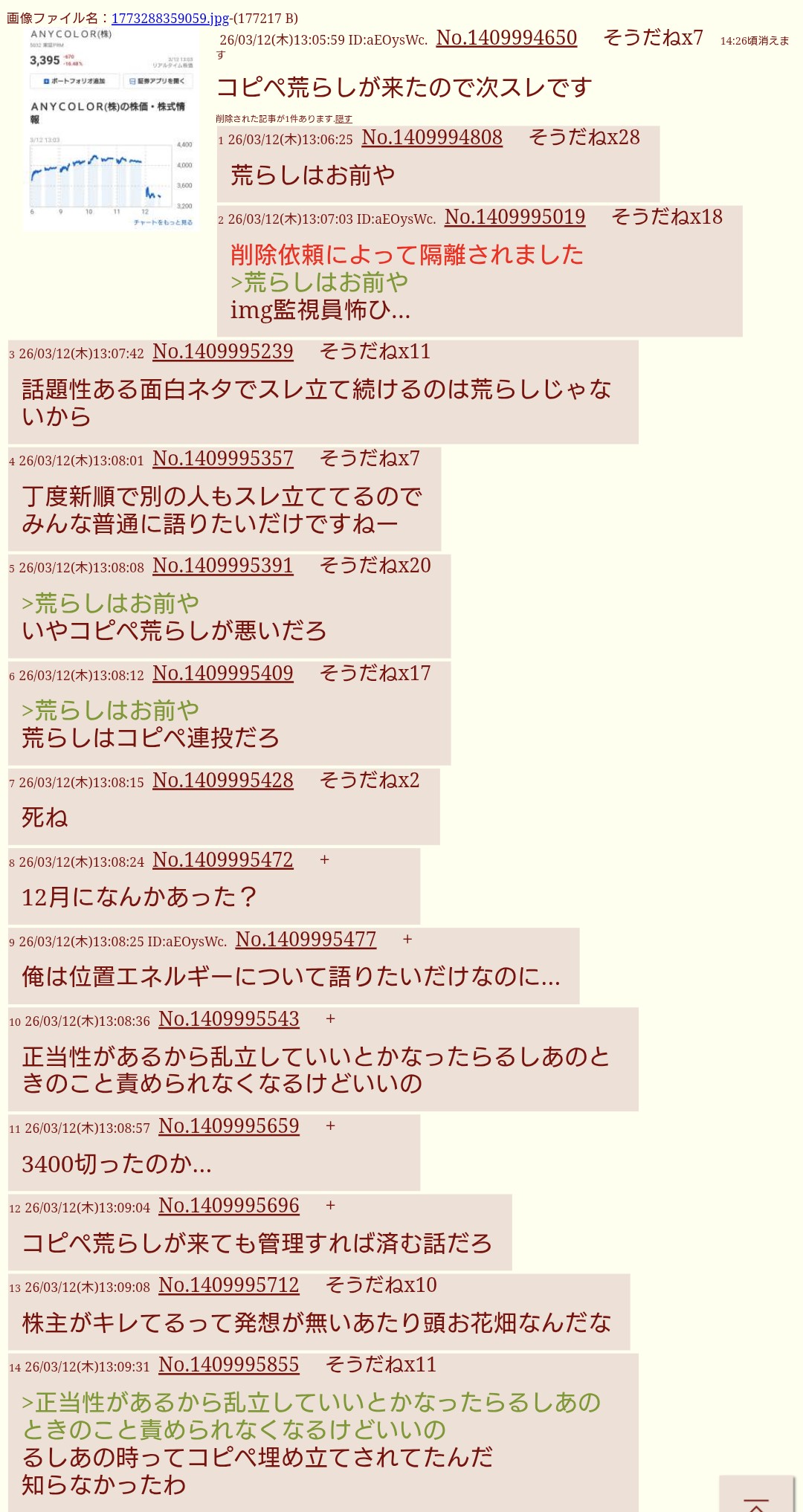 | … | 24無題Name名無し 26/03/07(土)22:48:14No.1955597そうだねx10決算発表近いから前スレみたいにさっさと回線焼きたいんだろ |