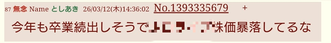 | … | 30無題Name名無し 26/03/07(土)22:50:54No.1955603そうだねx13>よほど決算悪いんか? |