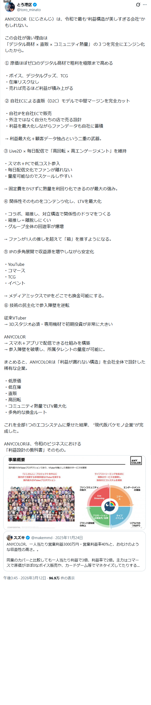 | … | 3無題Name名無し 26/03/07(土)21:59:49No.1955571そうだねx2にじさんじ運営会社ANYCOLORによる違法疑いの行為等が確認された場合は上記通報先に加えて以下にも通報を |