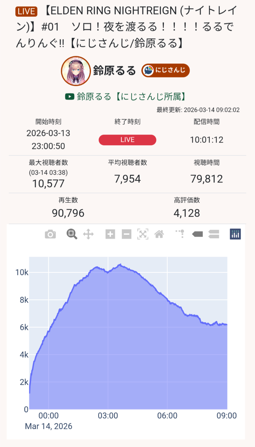 | … | 1928無題Name名無し 26/03/16(月)19:26:00No.1958140そうだねx1>ENの同接増えてるから復調!は何回言ってんだよ… |