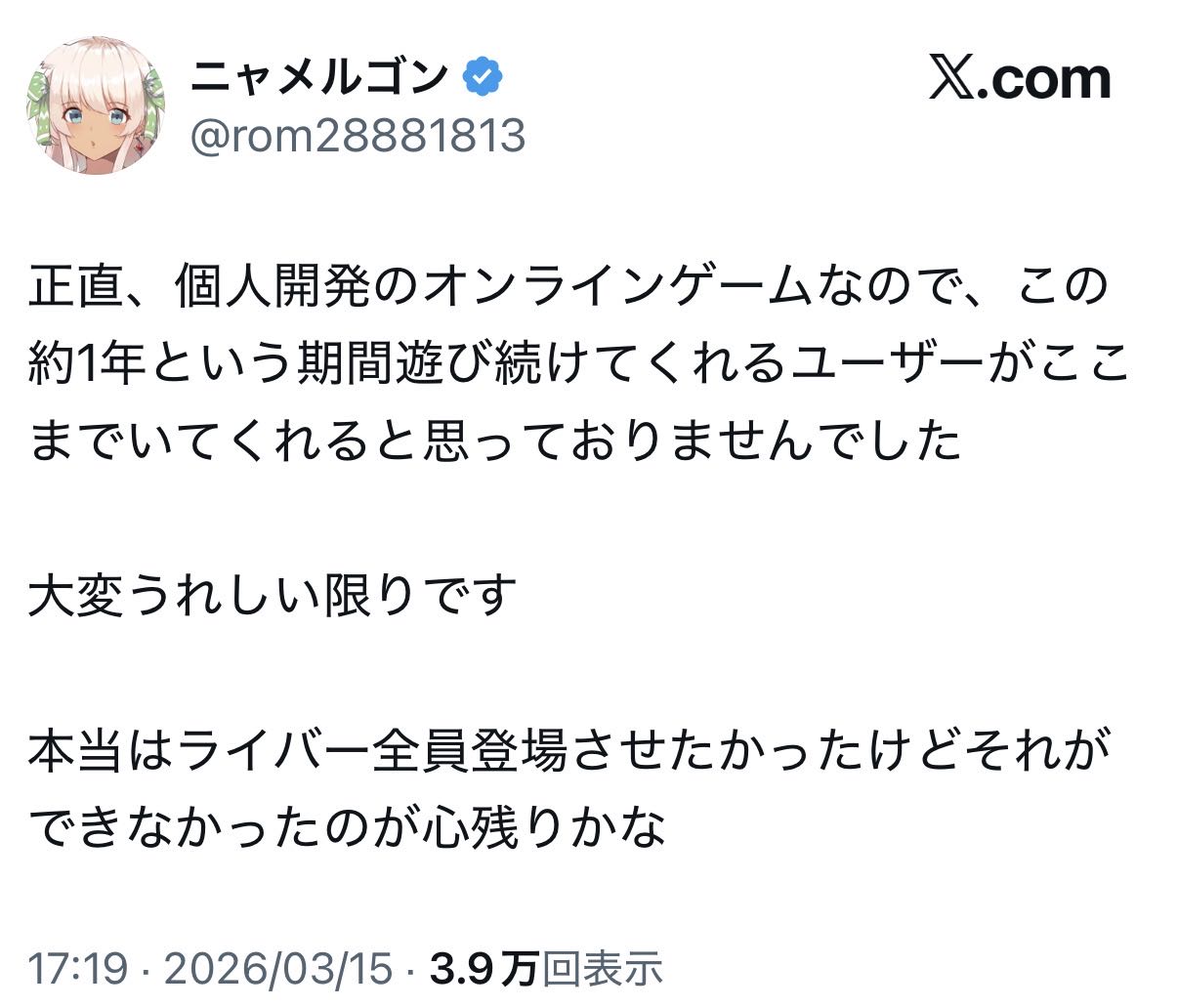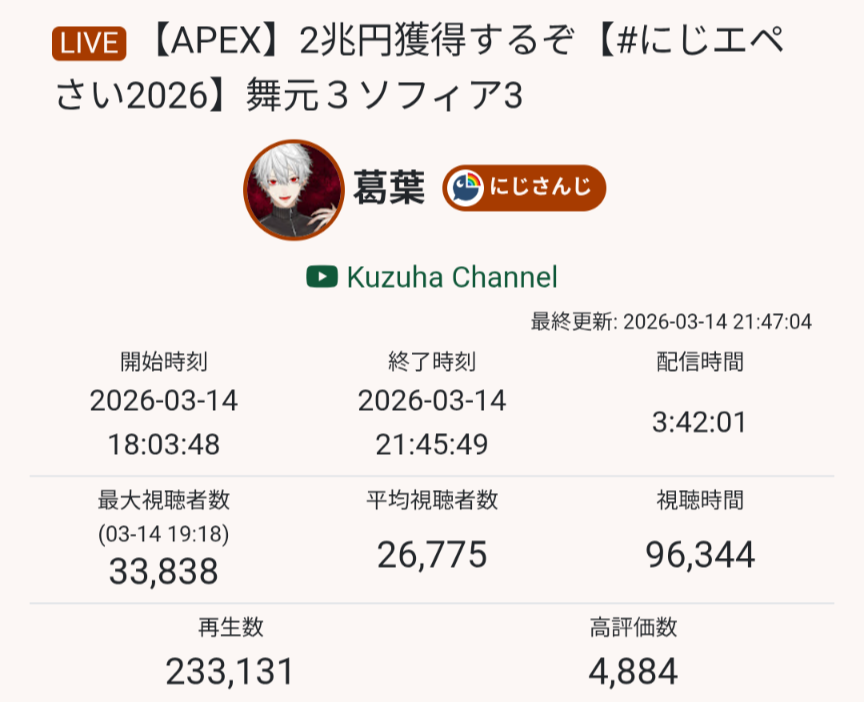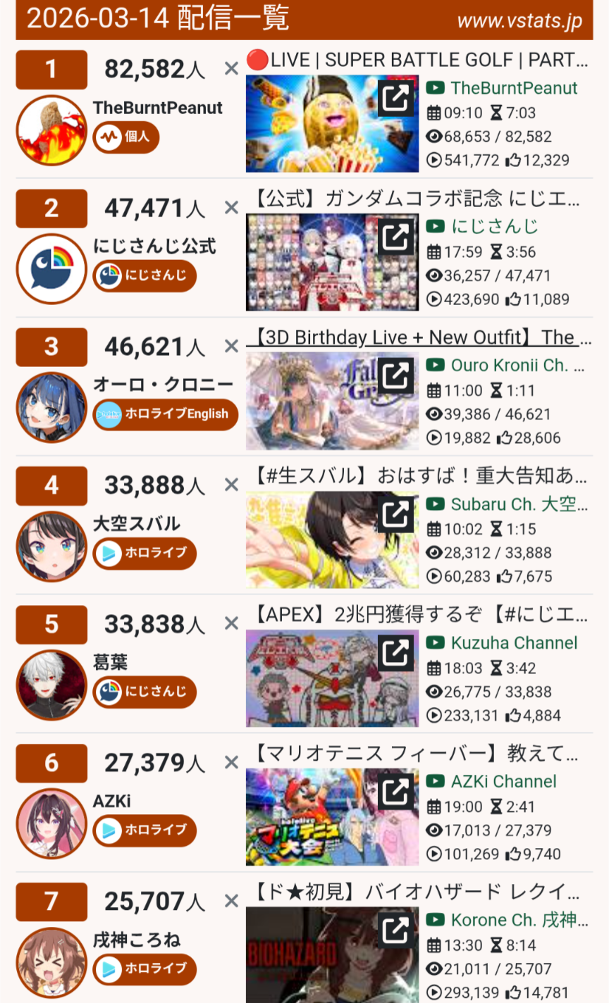 | … | 1921無題Name名無し 26/03/16(月)19:02:52No.1958132そうだねx5ENの同接増えてるから復調!は何回言ってんだよ… |