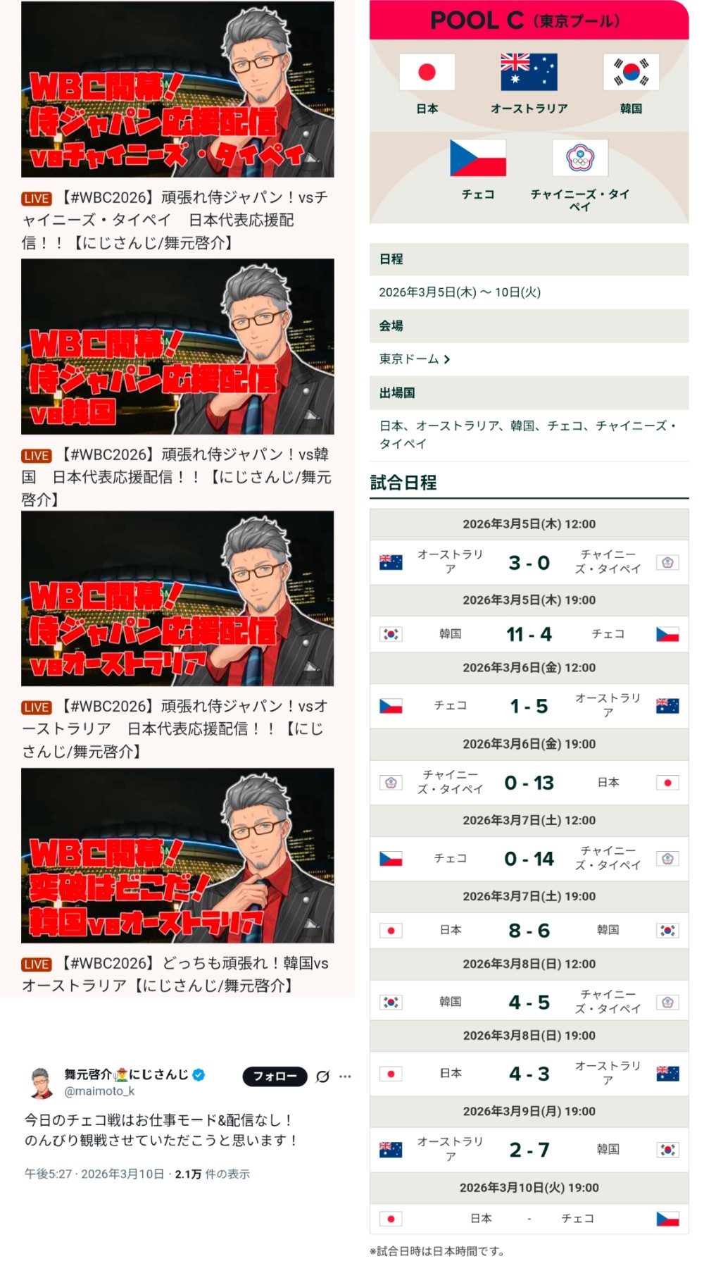 | … | 55無題Name名無し 26/03/19(木)07:43:39No.1958669そうだねx1すき家もだけどにじ甲じゃ10万人以上同接あるのに今回のWBCのNetflix案件の舞元の同接1万人行かなかったもんな |
