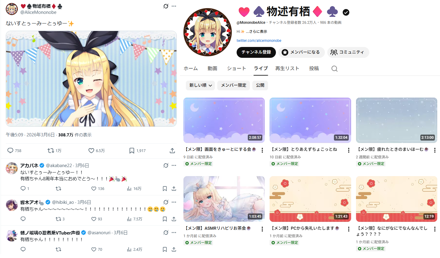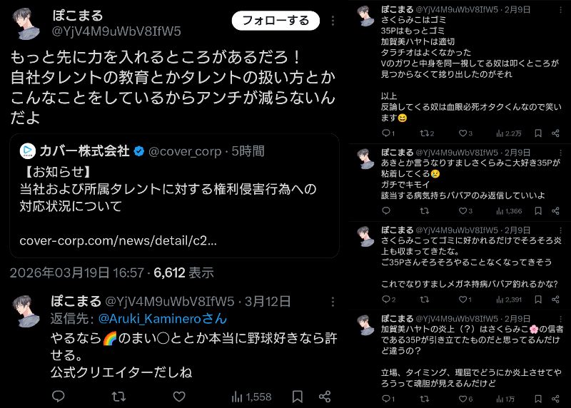 | … | 81無題Name名無し 26/03/19(木)12:06:16No.1958717そうだねx33月はカバーが誹謗中傷対応の続報出すしそれで何かあるのかもね |