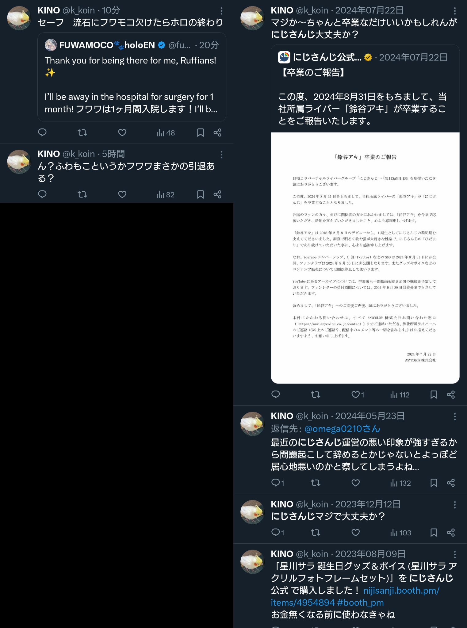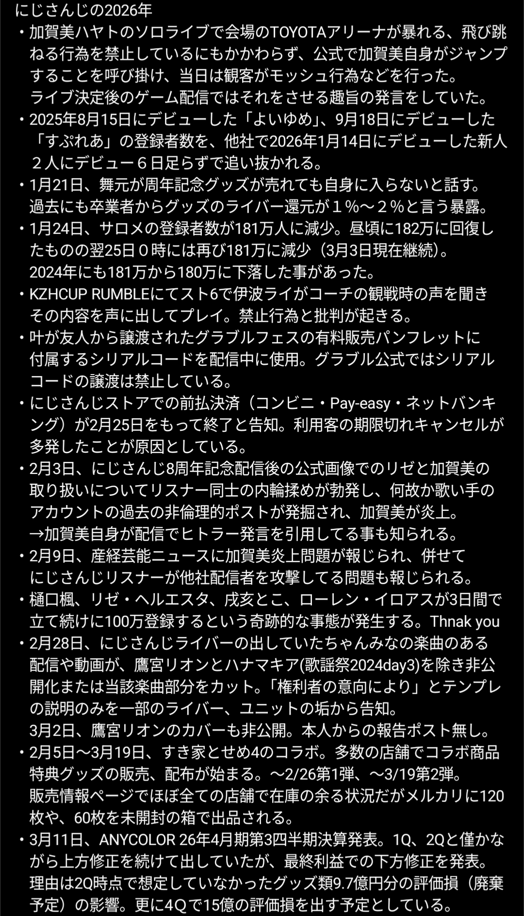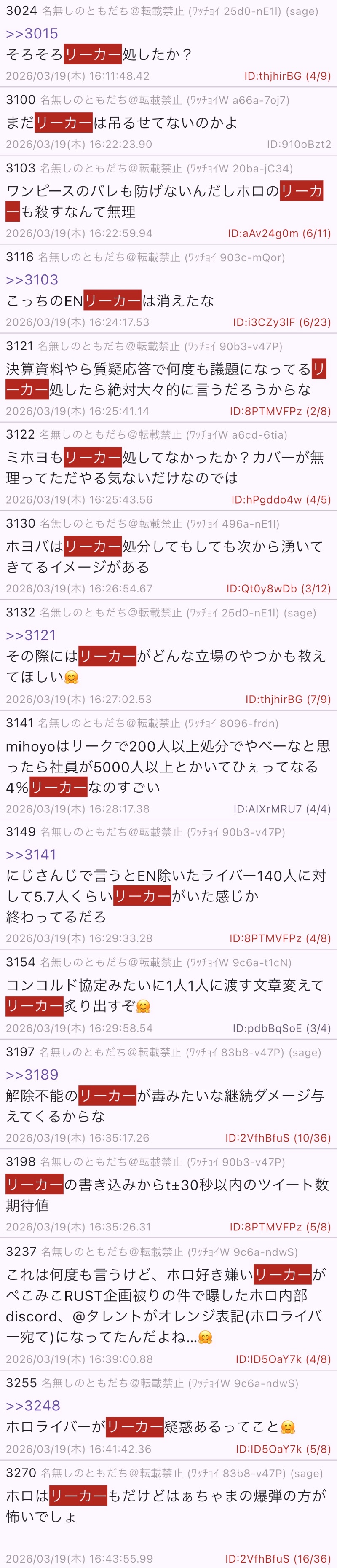 | … | 9無題Name名無し 26/03/18(水)18:47:10No.1958536そうだねx3※このスレはにじさんじの運営、ライバー、リスナーの迷惑行為や道徳に反する行動を収集するスレです |
