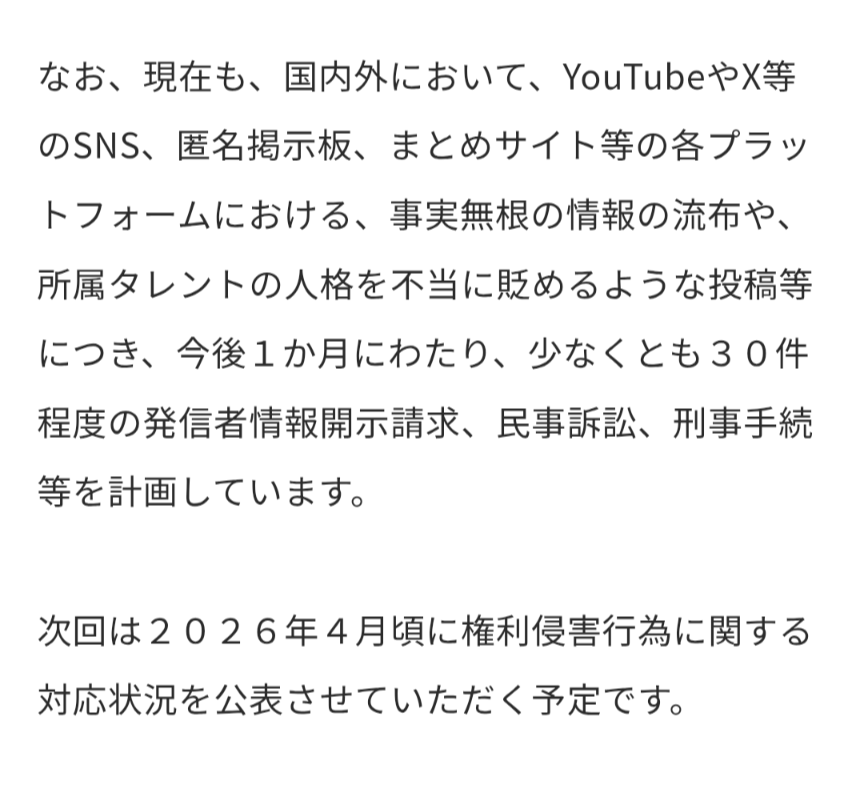 | … | 308無題Name名無し 26/03/20(金)12:34:51No.1959027そうだねx6>前にもあったが卒業デマ拡散はもろに株価に影響する内容だから普通に風説の流布になる可能性大だろ |