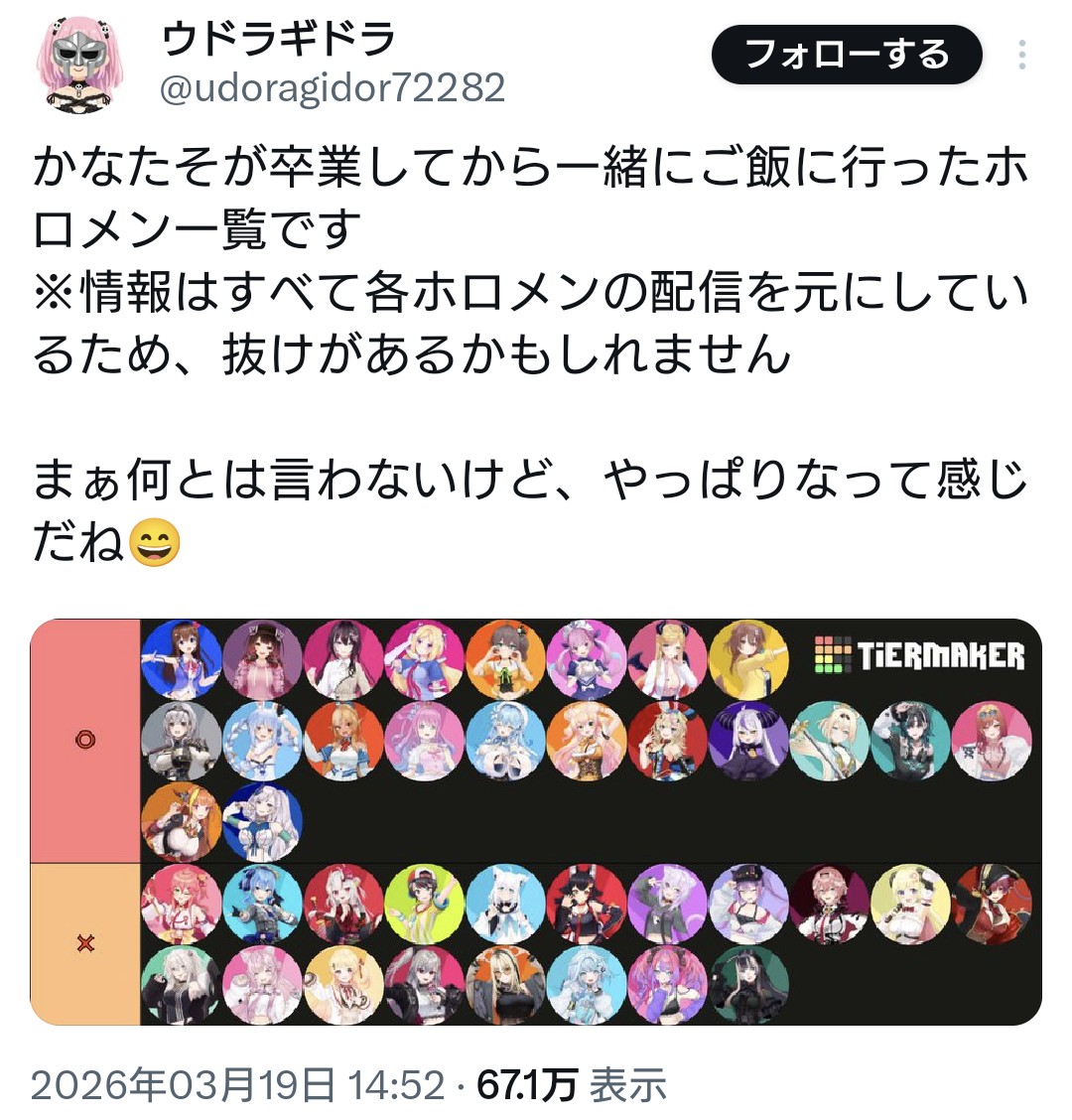 | … | 48無題Name名無し 26/03/19(木)06:59:36No.1958662そうだねx24にじさんじは一般への知名度がとにかく低い |