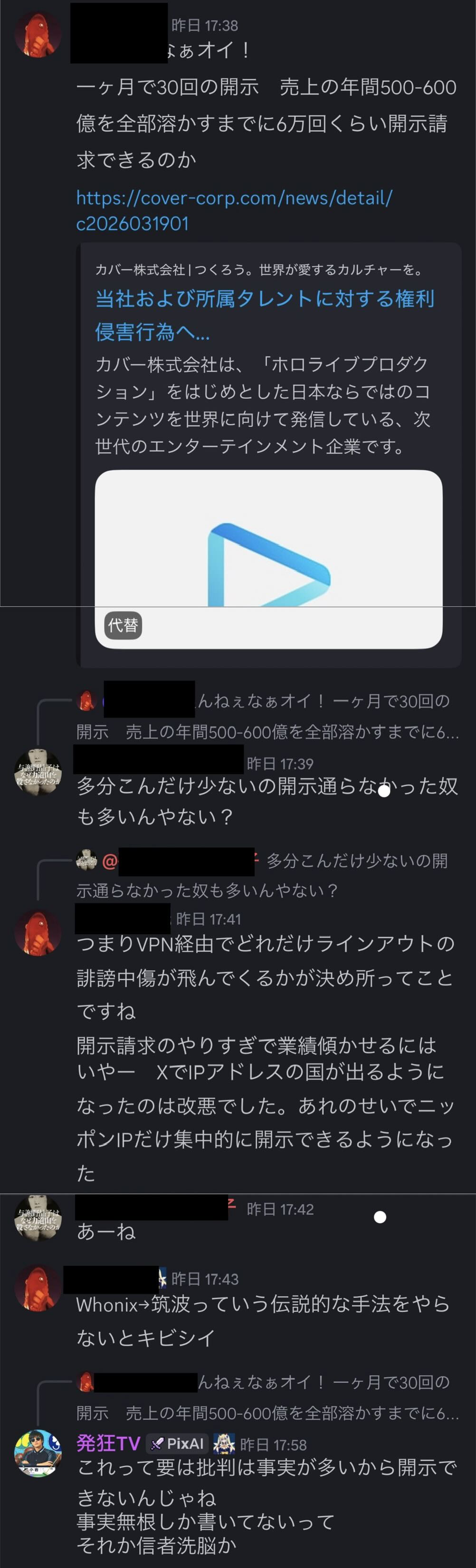 | … | 261無題Name名無し 26/03/20(金)09:39:51No.1958977+大本営が自由なファンコミュニティって言ってるものを開示して訴訟か |