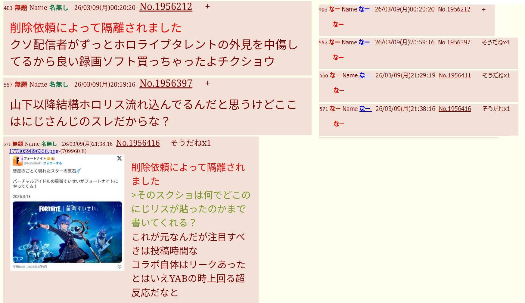| … | 314無題Name名無し 26/03/20(金)13:51:19No.1959034そうだねx30 1773982279613.jpg-(215679 B) >日付的ににじリスっつーか反転Vアンチ臭いか |
