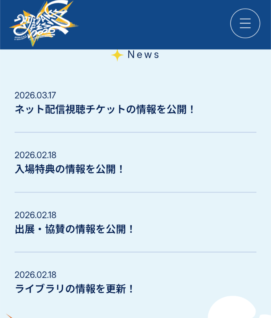 | … | 332無題Name名無し 26/03/20(金)17:56:00No.1959056そうだねx6>フェスやるたびに言われるけど毎度かなり開催日近くならないと掲載されないから載るのはまだまだ先だろう |