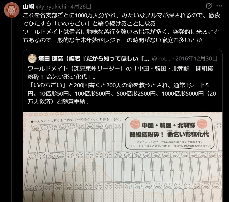 | … | 37無題Name名無し 26/02/16(月)03:37:49No.10965+【告発】若い女性の「尊厳」を奪った宗教家。その卑劣な手口 |