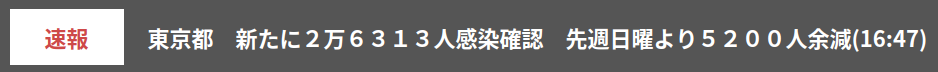 8/7 東京新規感染者数 26,313人 NHK速報削除された記事が3件あります.見る