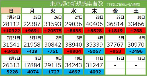 | … | 1無題Name名無し 22/08/11(木)17:02:03No.189372+ 1660204923647.png-(73503 B) 青は東京の新規感染者数、赤は東京の新規感染者数7日移動平均です |