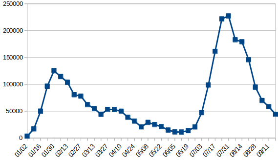 | … | 3無題Name名無し 22/09/24(土)16:55:14No.191382そうだねx1 1664006114133.png-(84821 B) 青は東京の新規感染者数、赤は東京の新規感染者数7日移動平均です |