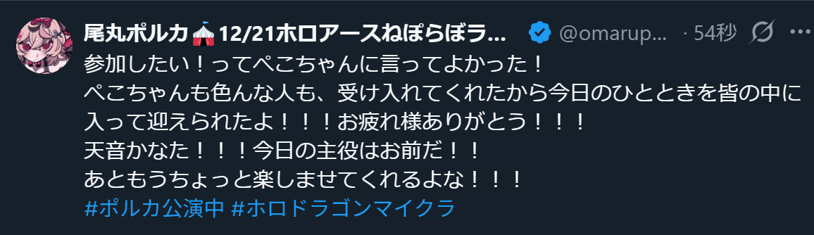 | … | 1000無題Name名無し 25/12/21(日)00:03:54 IP:219.104.*(nuro.jp)No.11154978そうだねx17 1766243034324.png-(117374 B) ポルカはほんといいこと言う |