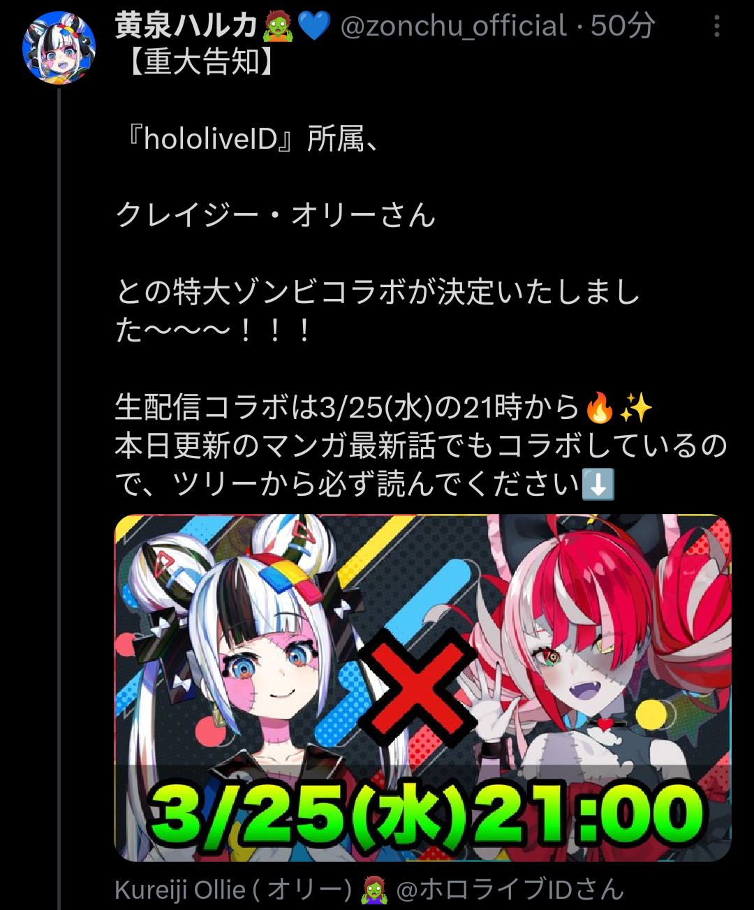 | … | 77無題Name名無し 26/03/21(土)21:55:05No.11727362そうだねx1 1774097705860.png-(877599 B) ゾンビコラボなんだぜ |