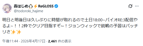 | … | 28無題Name名無し 26/04/16(木)23:09:40No.11878621+2月末からマリオ・マリオ・マリオ(テニス)時々バイオみたいな配信スケジュールだしマリオが本当に好きなんだなって |
