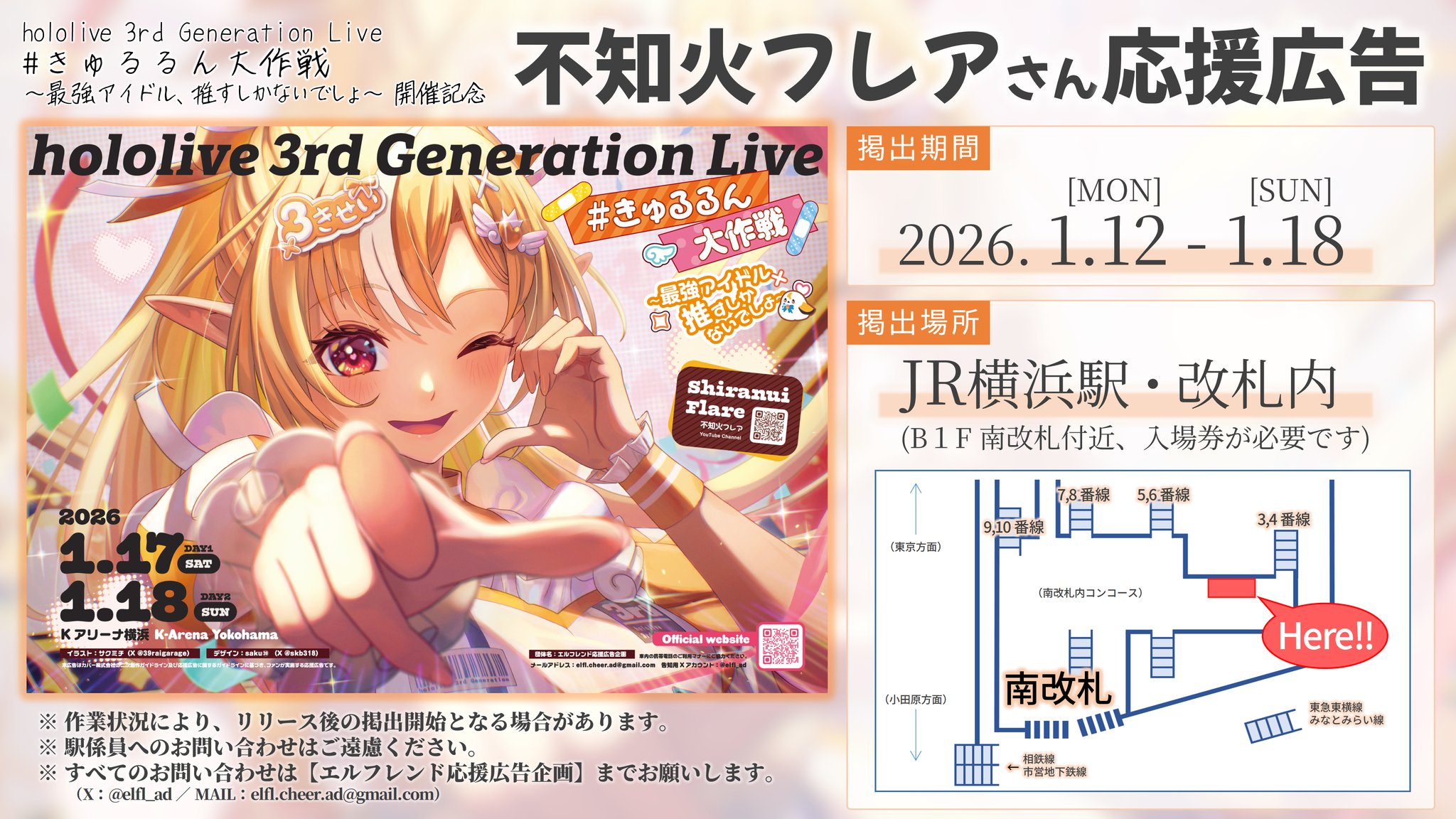 | … | 10無題Name名無し 26/01/12(月)19:30:44No.11369792そうだねx1 1768213844649.jpg-(439105 B) 横浜駅に有志エルフレの広告が出てるらしい |