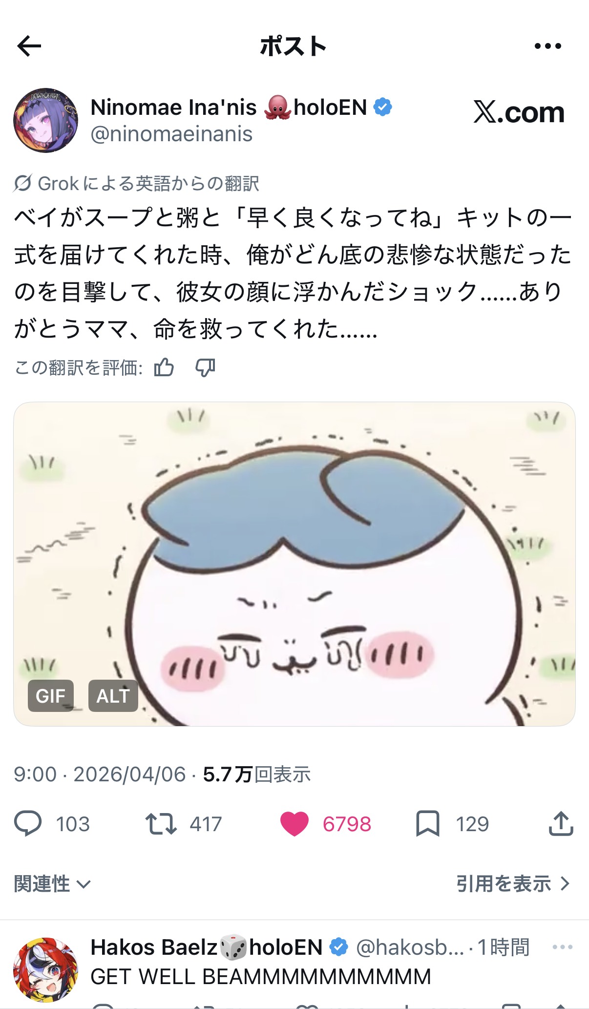 | … | 996無題Name名無し 26/04/02(木)21:18:26 IP:133.200.*(mesh.ad.jp)No.11803605+ラミィちゃんのチャンネルで鳥鳴いてる? |