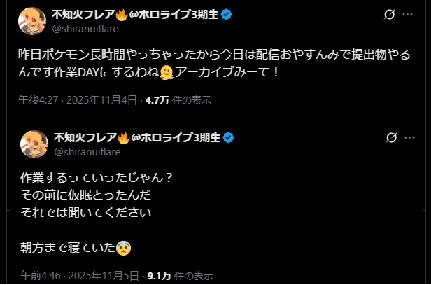 | … | 43無題Name名無し 25/11/06(木)22:09:10No.10834631+ピッタリ22時に終わらすの流石ですわ |