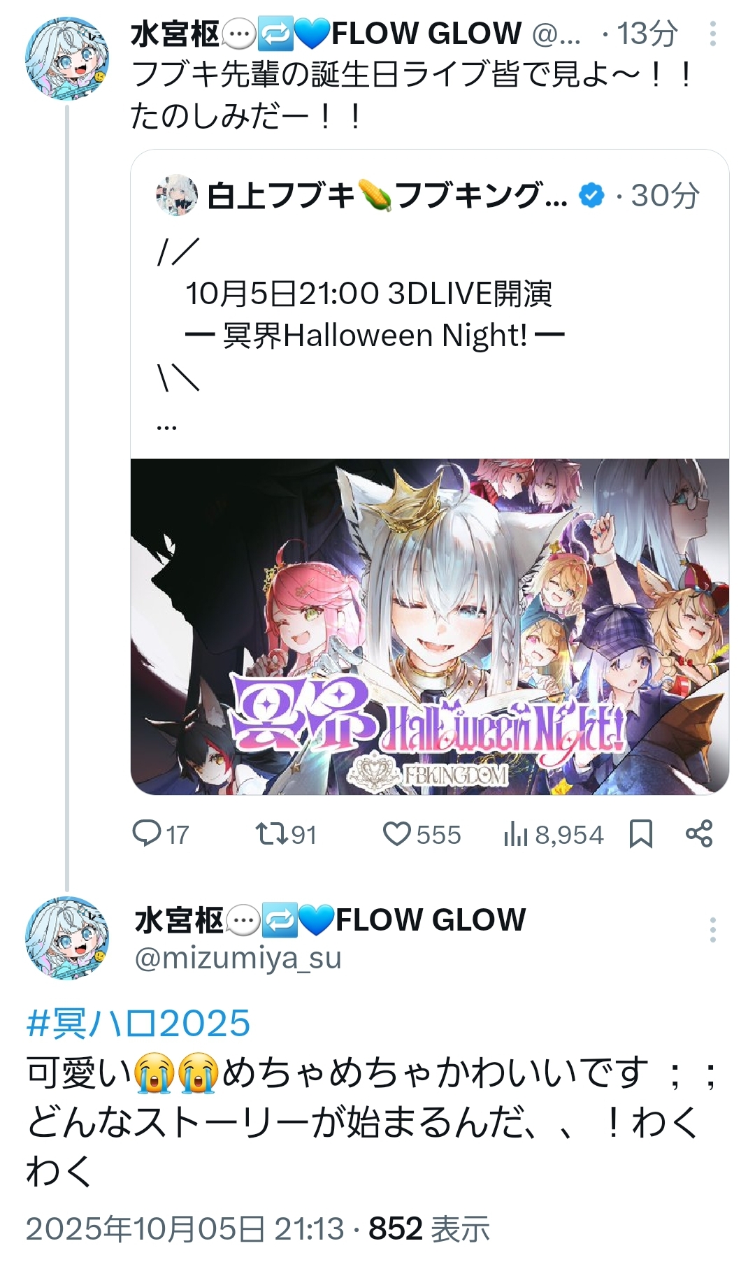 … | 94無題Name名無し 25/10/05(日)21:01:39No.10611834そうだねx2 1759665699246.jpg-(208377 B) ![]() 【#冥ハロ2025】白上フブキ生誕3DLIVE「冥界Halloween Night!」【白上フブキ/ホロライブ】 |