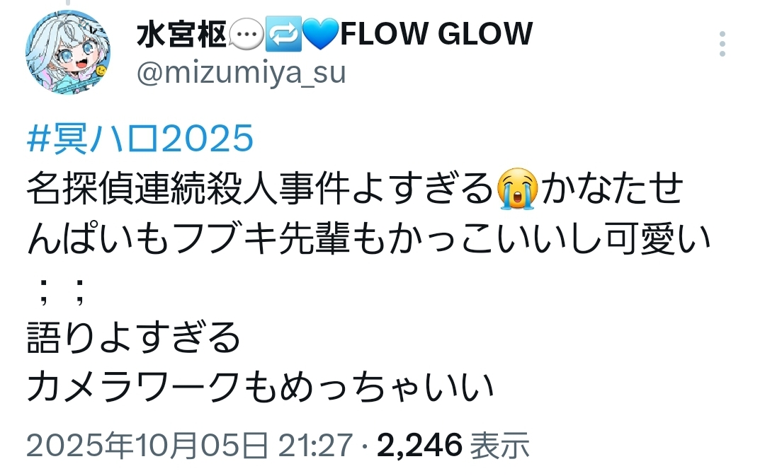 … | 30無題Name名無し 25/10/05(日)20:49:11No.10611769+生誕祭のサムネ探偵だけどミルキィでも歌うんかな |