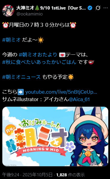 … | 960無題Name名無し 25/10/05(日)21:38:04No.10612714+>朝ミオあるよ |