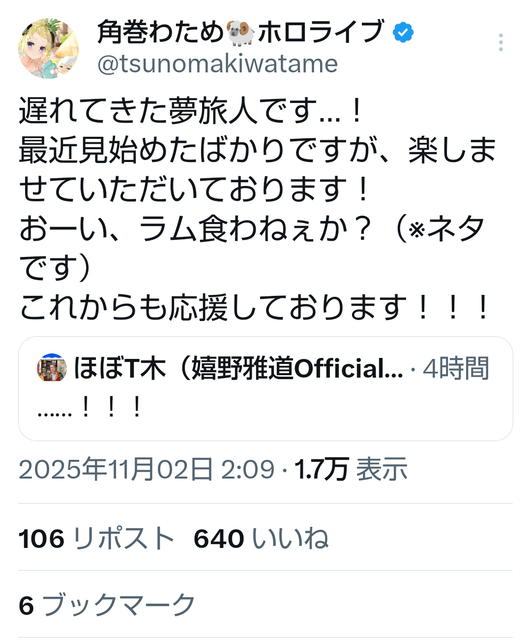 | … | 29無題Name名無し 25/10/29(水)16:18:58No.10774206そうだねx5角巻"ホロメン全員にルドーやって欲しい"わため |