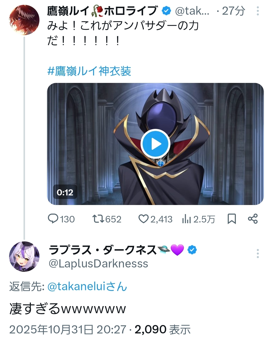 | … | 906無題Name名無し 25/10/31(金)20:38:30No.10790236+ルイ姉の新衣装見たけど…あの…これギアス同時視聴か関係以外に使う時あるんすか…? |