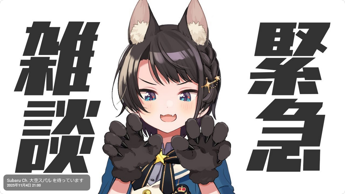 | … | 951無題Name名無し 25/11/04(火)23:23:12No.10826924+おかゆは今一生懸命にぎにぎしてるってのにスバルはさぁ! |