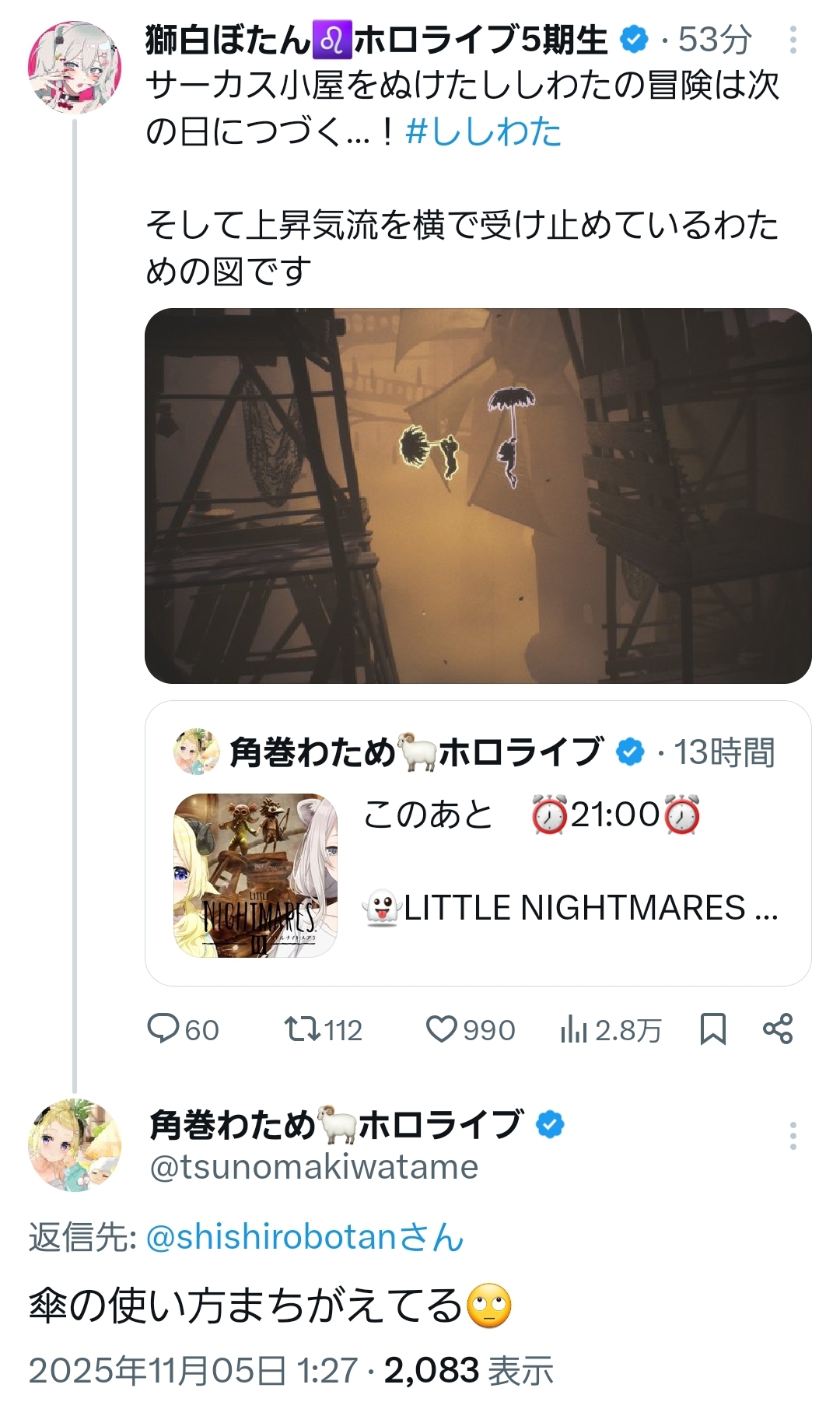 | … | 944無題Name名無し 25/11/05(水)19:38:52No.10829255+物理で戦うホロウィッチたち来年も見てぇなぁ |