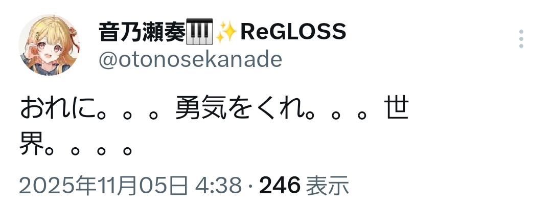 | … | 84無題Name名無し 25/11/05(水)01:13:23No.10828091+そらちゃんおもむろに時の逆さ歌を弾きだした |