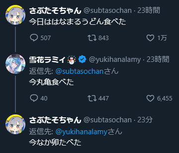 | … | 88無題Name名無し 25/11/05(水)01:16:20No.10828095+どうしようおかゆの配信見てたら朝ごはんのおにぎり食べちゃった… |