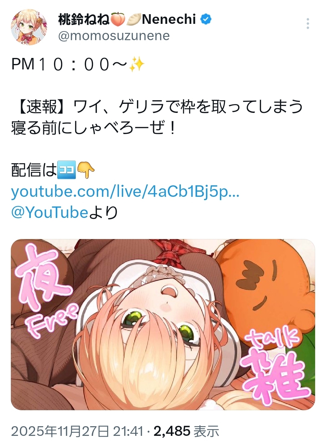 | … | 933無題Name名無し 25/11/27(木)22:09:55No.10994964+わため23時から雑談いけるのか…?ス虐で2時間くらいすっ飛ぶぞ |